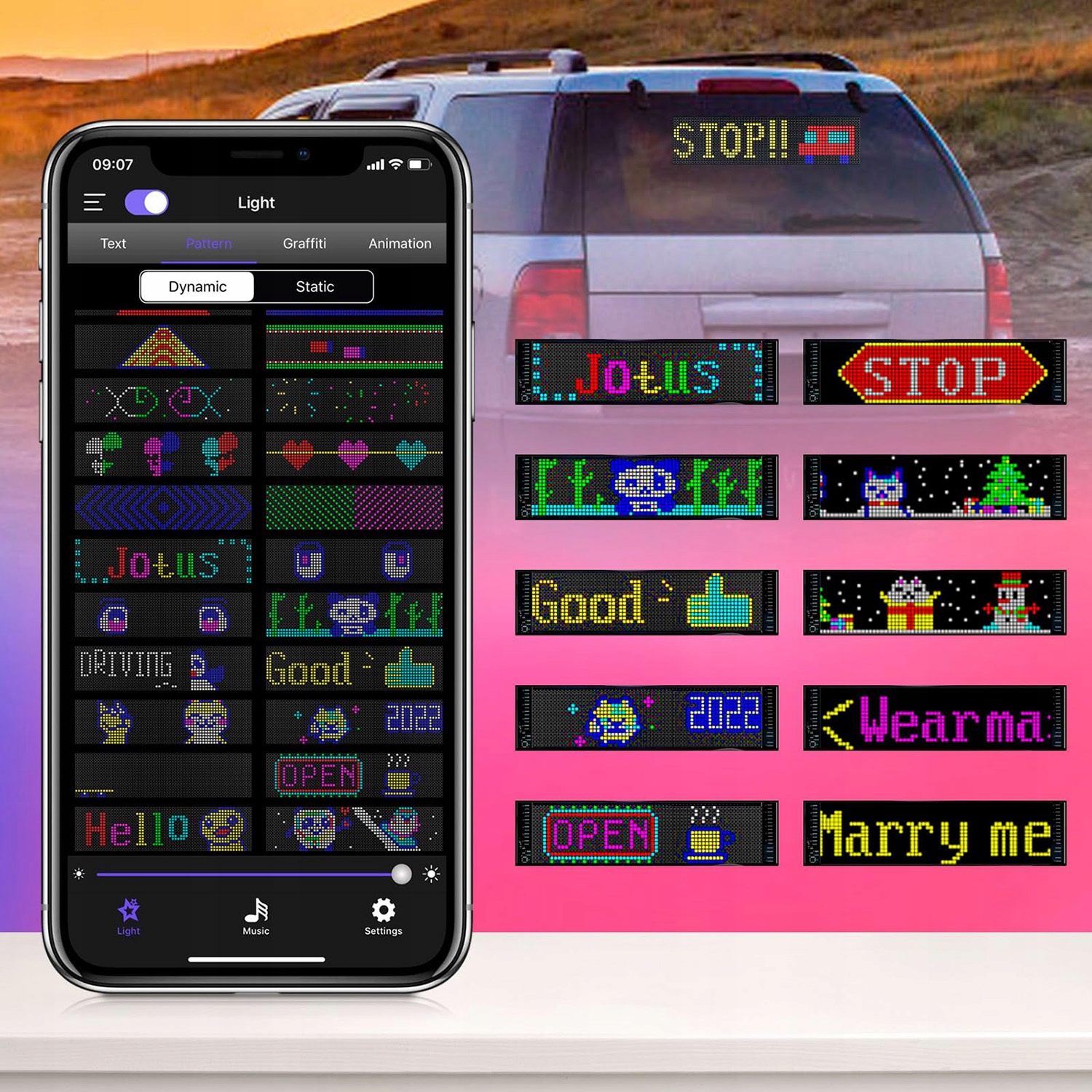 Автомобильный светодиодный дисплей с USB-портом, 5 В, приложением и пультом дистанционного управления.
