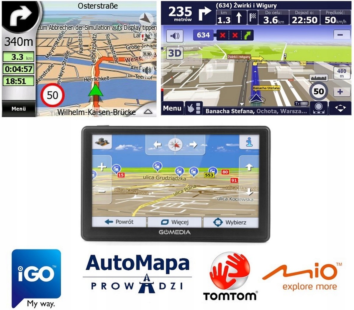 Навигация GoMedia 7010 — это очень интуитивно понятное устройствос новейшими картами всей Европы, а навигационное программное обеспечение основано на новейших версия системы iGO Primo на польском языке