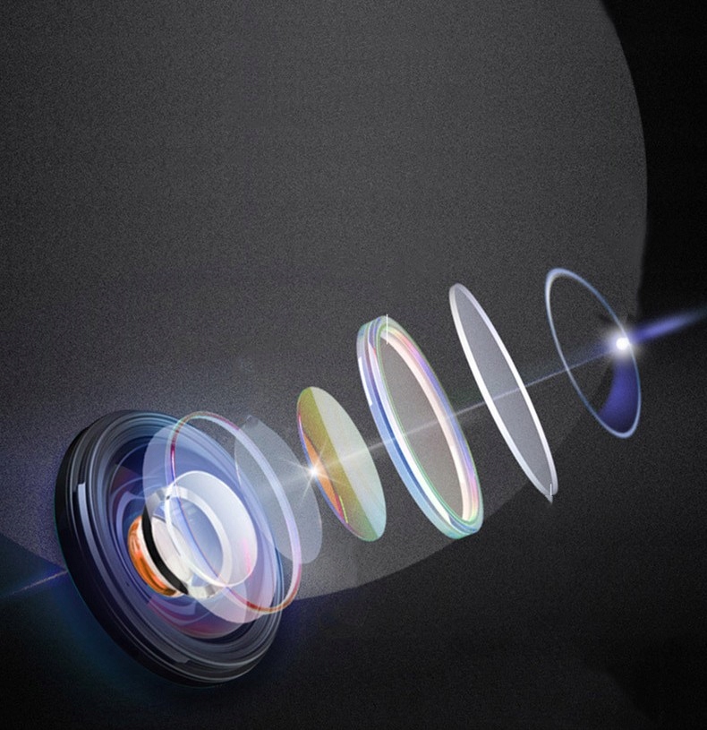 Оснащен 6 сферическими стеклянными линзами Full HD и инфракрасным фильтром;