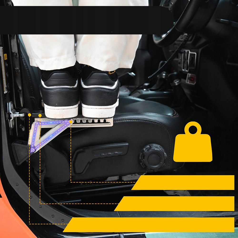 Эта складная ступенька автомобильной двери складывается, что упрощает и ускоряет загрузку и разгрузку багажников на крыше, боксов на крышу, каяков, каноэ, лыж, сноубордов, велосипедов и досок для серфинга.