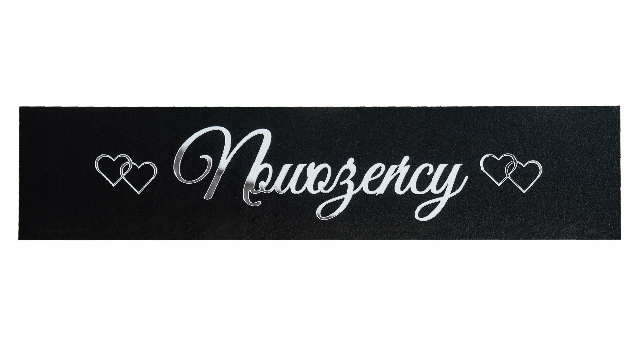 Табличка с декоративным текстом украсит автомобиль в день свадьбы. Надписи выполнены методом лазерной резки из серебристого зеркального оргстекла и наклеены на черные плиты МДФ.