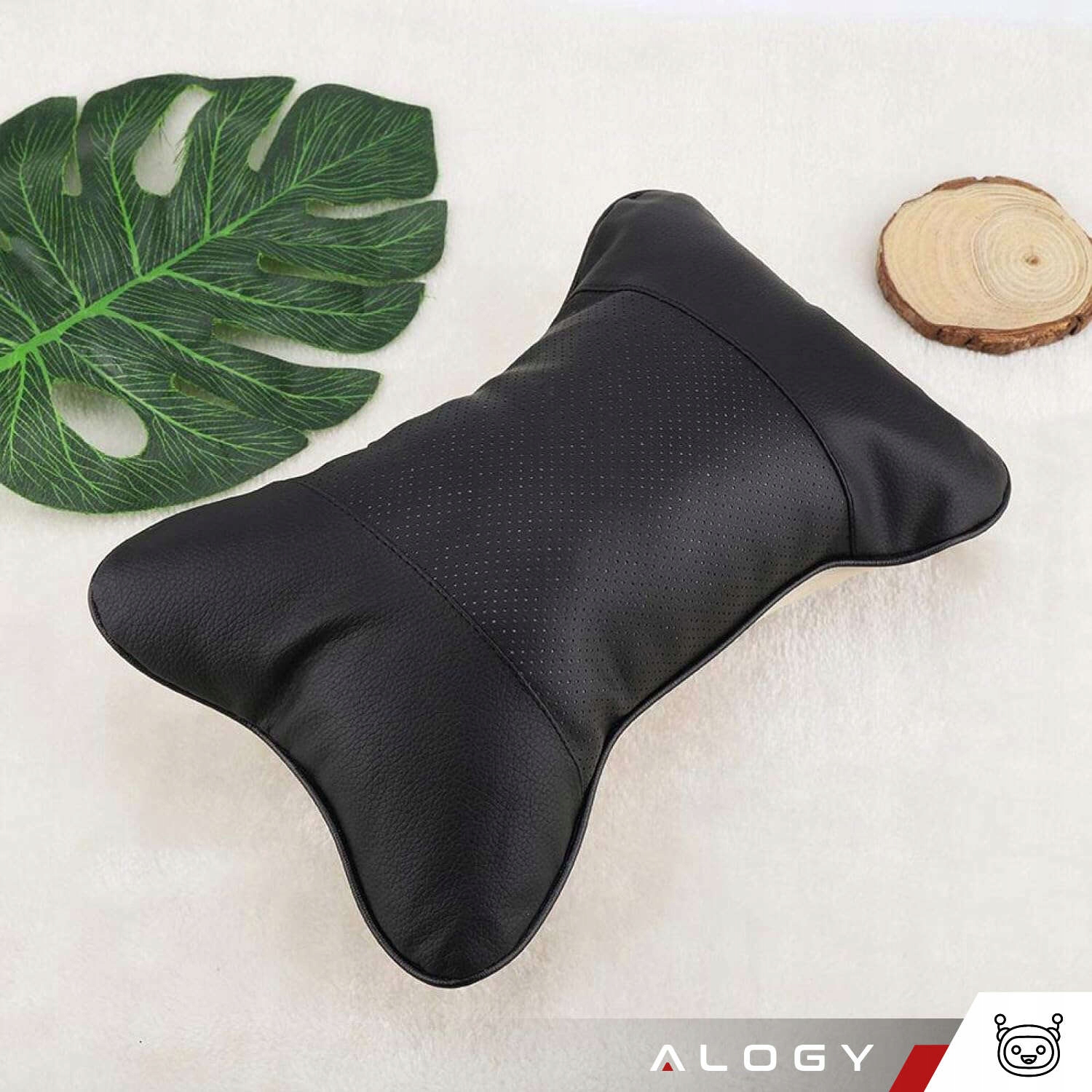▶️ Профильная автомобильная подушка для шеи, подголовник автомобиля, кресло, удобная, мягкая экокожа Alogy Black