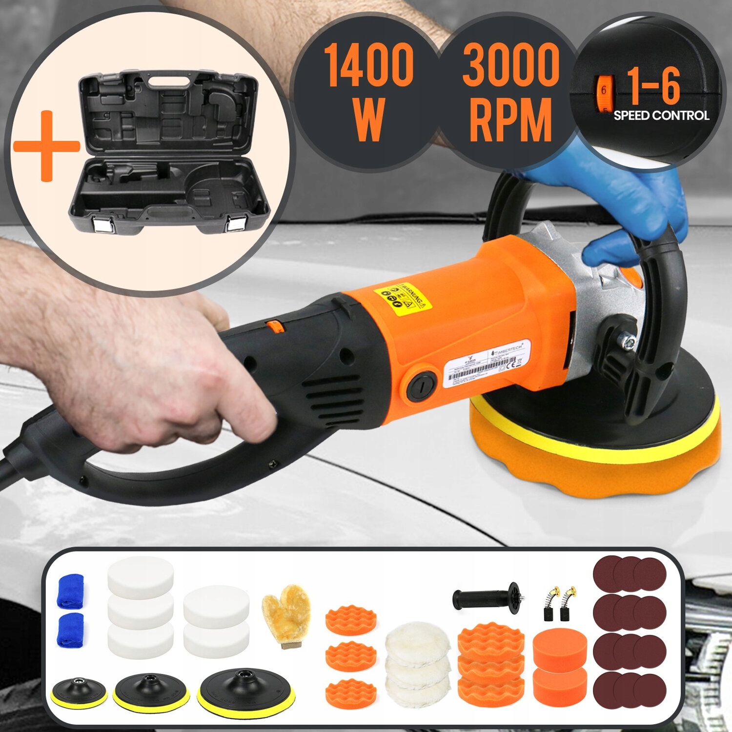 Бонус: продукт поставляется в прочном корпусе с тремя полируминными накладками: 125 мм, 150 мм и 180 мм и несколько других прикреплений, которые значительно способствуют работе