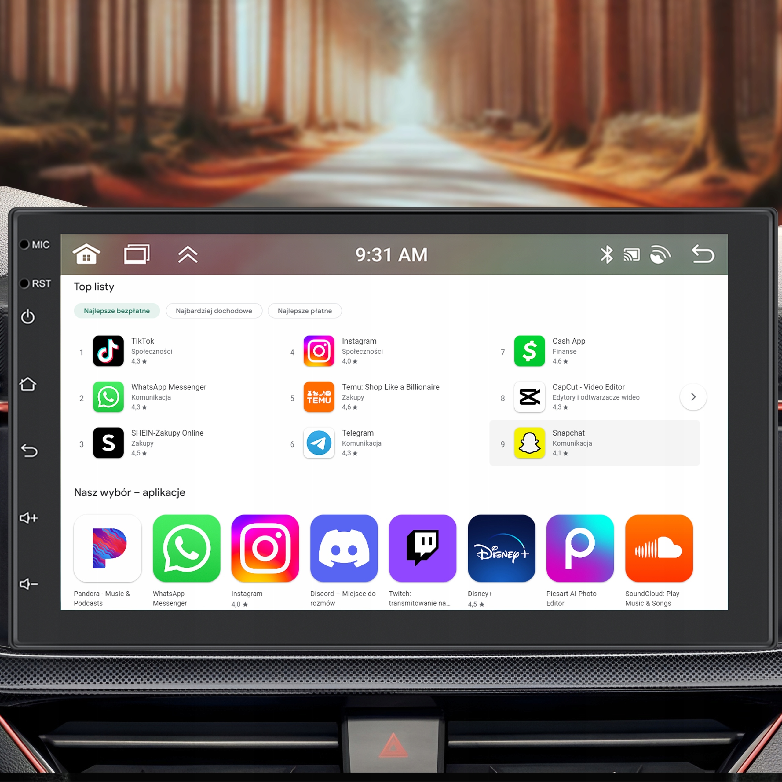 В магнитоле есть встроенный модуль CarPlay и Android Auto, а это значит, что вам не придется покупать дополнительные адаптеры. Благодаря этому решению вы сможете легко перенести приложения с телефона на экран магнитолы, получив удобный доступ к навигации, музыке, сообщениям и телефонным звонкам. Просто подключите устройство через Bluetooth, чтобы использовать его. с Google Maps, Yanosik, Spotify, YouTube, WhatsApp, Messenger, Deezer или Amazon Music без необходимости подключения телефона с помощью кабеля.