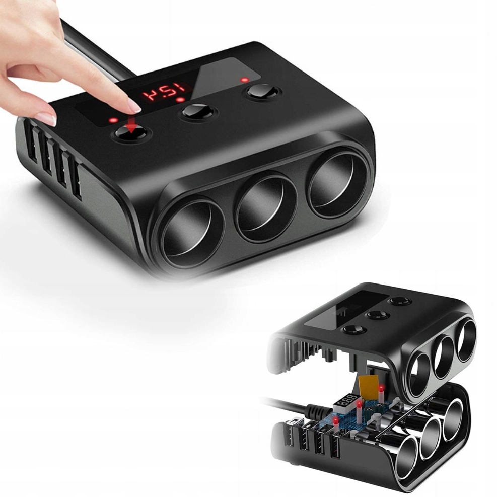 АВТОМОБИЛЬНАЯ РОЗЕТКА 12–24 В С 3 ВЫХОДАМИ ДЛЯ ПРИКУЧА И 4 USB-ПОРТАМИ 5 В