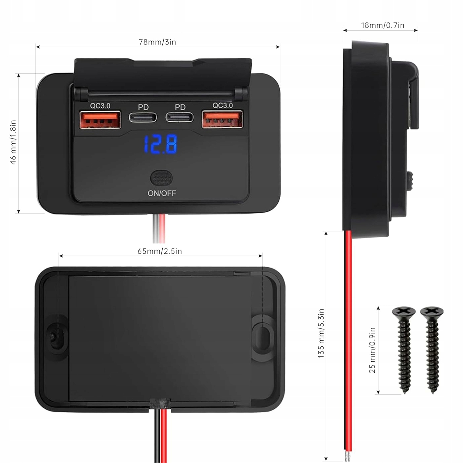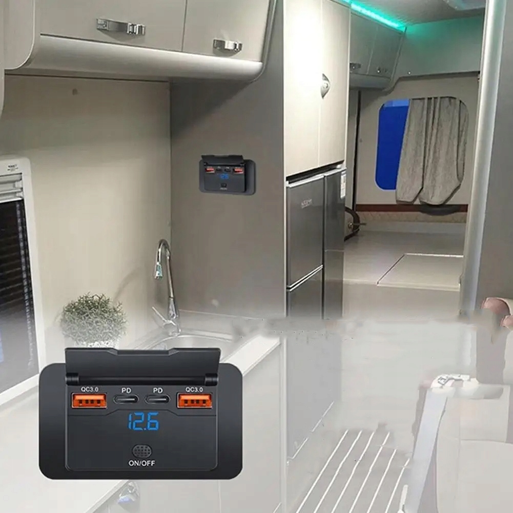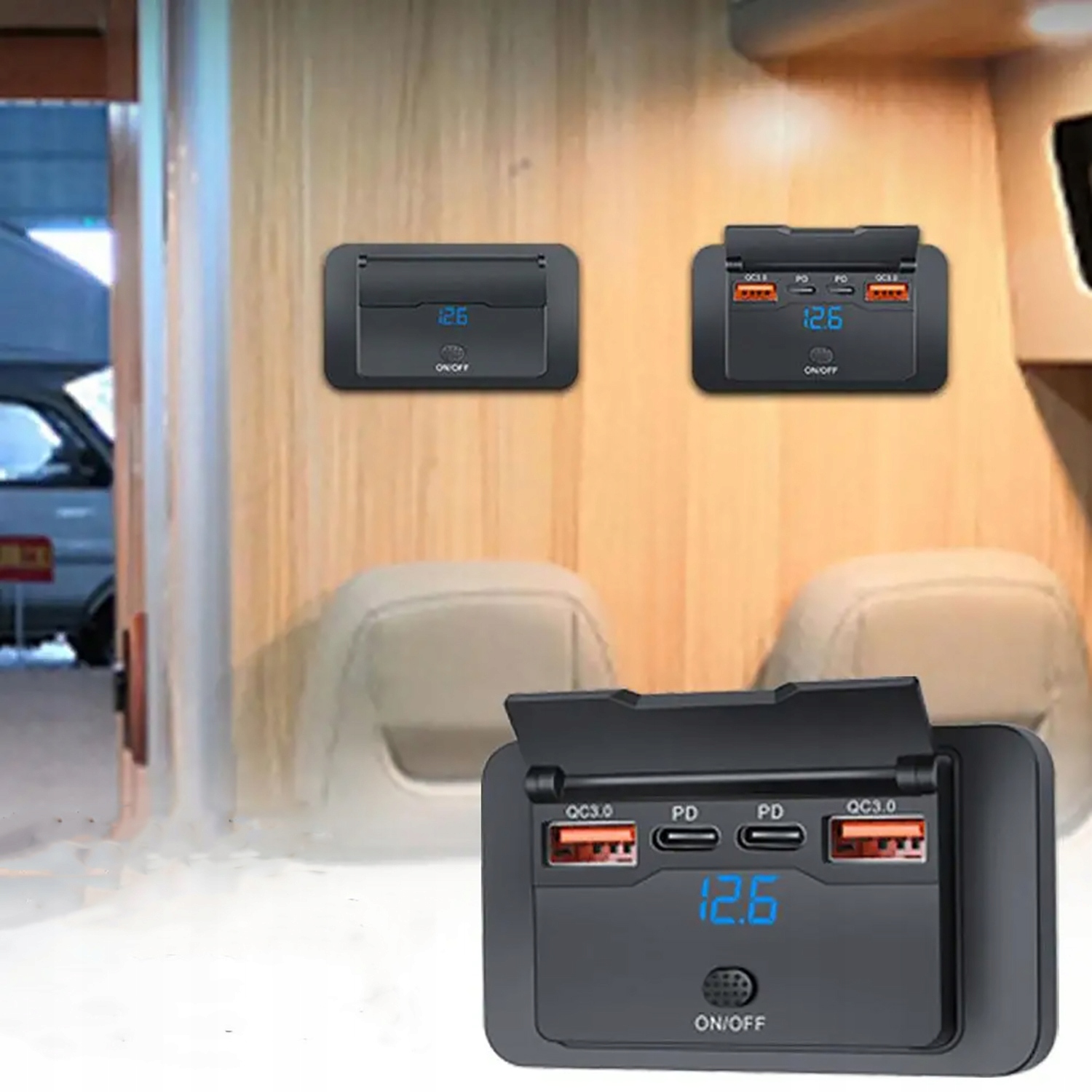 Розетка для автомобильного монтажа 12 В 24 В 4 USB PD QC 3.0 ВКЛ ВЫКЛ 96 Вт Крышка