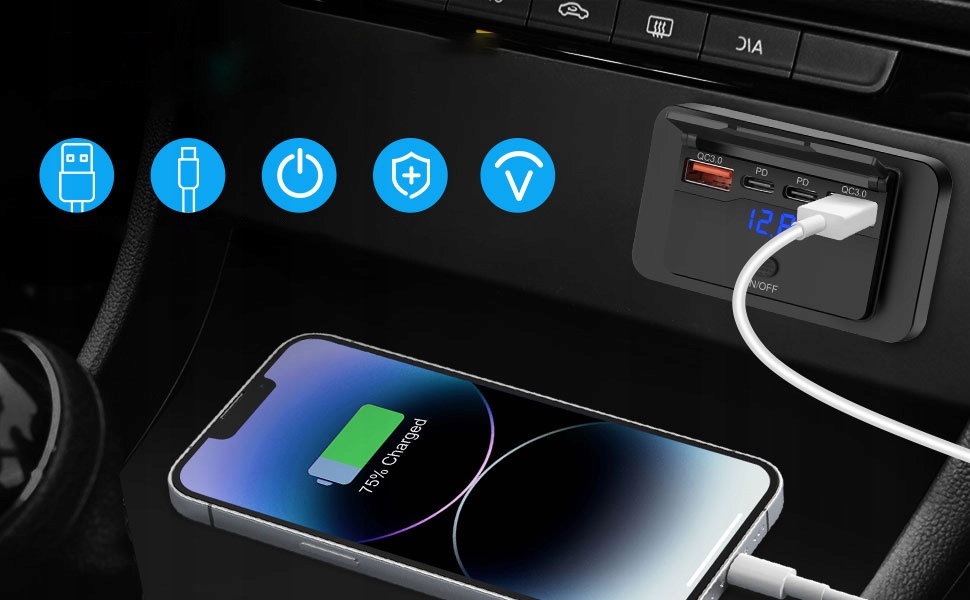 ➡️Порт быстрой зарядки типа A: порт быстрой зарядки 3.0 обеспечивает в 4 раза более быструю зарядку совместимых устройств. Зарядите совместимые устройства на 35 % всего за 80 минут.