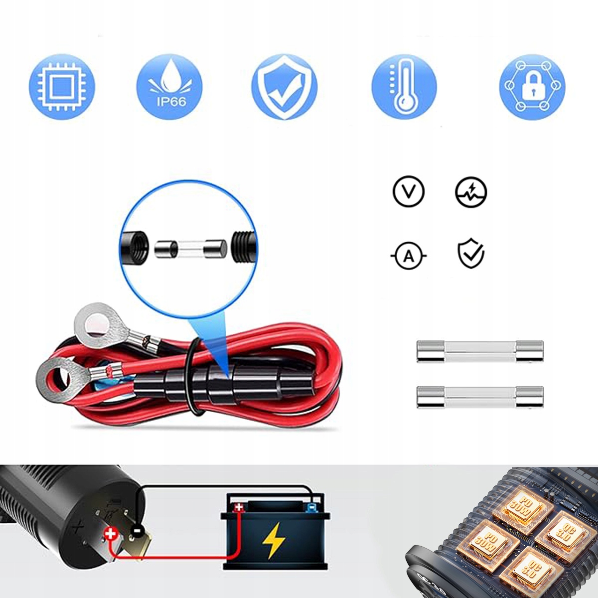 Применение: полезно для автомобилей, лодок, мотоциклов, квадроциклов, автодомов и т. д. Совместимо с зарядкой мобильного телефона, GPS, цифровой камерой, КПК, планшетами Android, аккумуляторами Powe, контроллерами видеоигр i