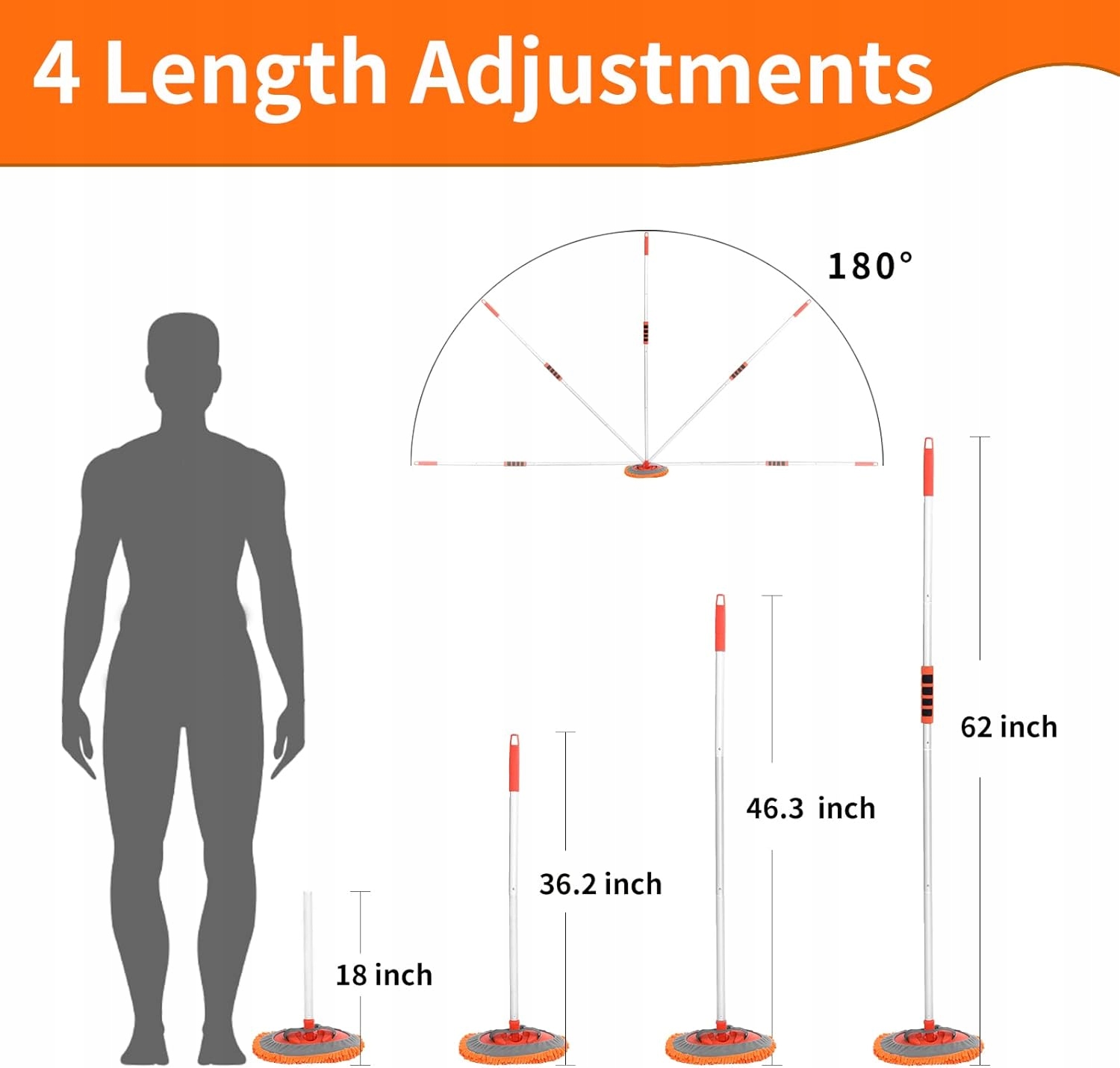 ???? 【Hochwertiges Mikrofasertuch】- Das Weiche Microfaser-Reinigungstuch IST Suger Saugfähig, Hinterlässt Keine Schlierenrückstände, IST Kratz-und Fusselfrei. Perfekt für Autowäsche, Geschirrspülen, Mikrowellen-, Fliesen-, Dusch- und Wannenreinigung. Wenden Sich Bei Fragen Oder Bedenken Zu Unsseren Langstiel-Aut-Authrten Gerne и Das Citimoko-ServiceTeam. WIR ARBEITEN IMMER HART DARAN, IHNEN DAS BESTE Lächeln und Den Bestten Service Zu Bieten. ???? 【180 ° Drehung und abnehmbares Design】- Der Stab aus aluminumlegierung und der bürstenkopf könnnen nach wardben um 180 gedreht werden, um eine reinigung ohne tote stellen za erreichen. DER AUTOVASCH-MOPPKOPF IST LEICHT ABNEHMBAR UND KANN ALS AUTOVASCHHANDSCHUH VERDENDET WERDEN, UM DIE AUTOREINIGUNG ZU ERLEICHENTERN. Das Design des Schaumstoffgriffs в Orange und Schwarz It Nib Schön, Sondern Hat Auch Eine Anti-Rutsch-Function, Die Die Vertendung Angenehmer Macht. ???? 【Mikrofaser-Chenille-Bürstenkopf】-Der Weiche, Kratzfreie, Nicht Fusselnde Chenille-Mikrof