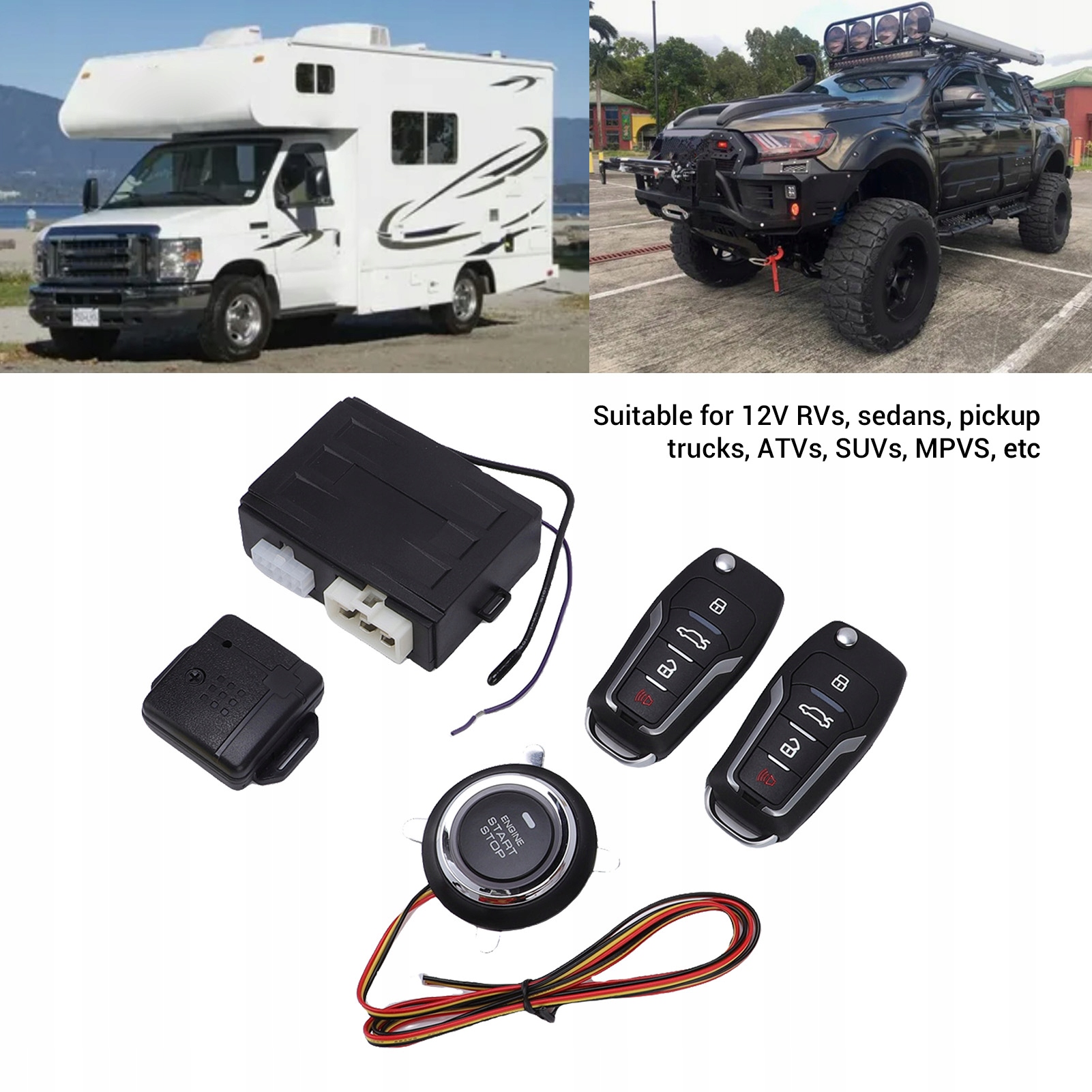 4. ПРАКТИЧНОСТЬ И УНИВЕРСАЛЬНОСТЬ: система запуска нажатием включает в себя функции безопасности, такие как сигнализация стояночного света при открытии дверей и задержка внутреннего освещения. Обеспечивает гибкую синхронизацию импульсов центрального замка и поддерживает большинство транспортных средств с напряжением 12 В, включая легковые автомобили, грузовики, внедорожники и квадроциклы с электрическими системами постоянного тока 12 В.