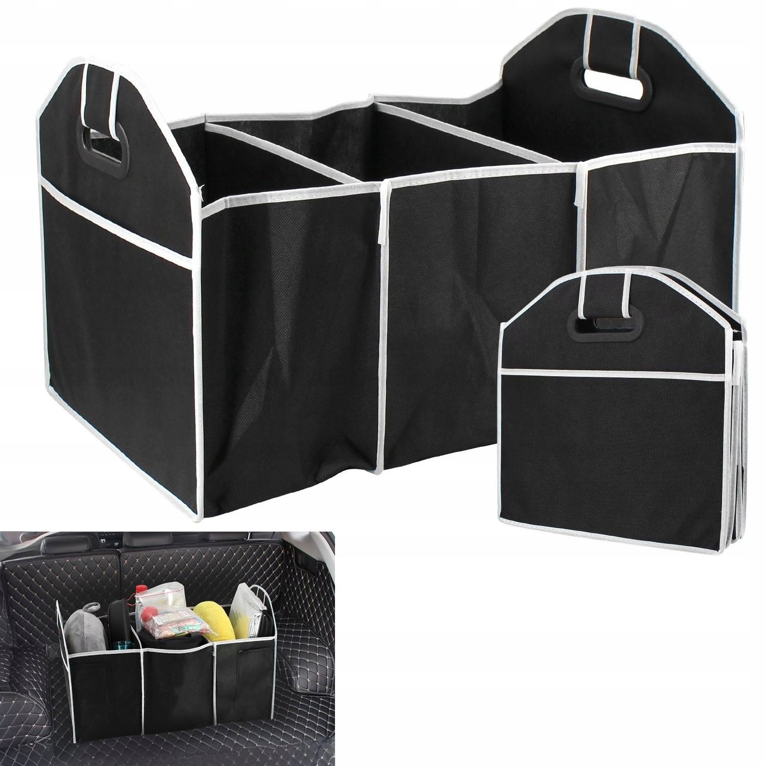 Ищете практичный способ поддерживать порядок дома или в машине? Наш складной органайзер – идеальное решение для хранения нижнего белья, одежды, чистящих средств, продуктов питания, а также необходимых аксессуаров в багажнике. Благодаря возможности складывания после использования он занимает очень мало места, что делает его чрезвычайно удобным в повседневном использовании.