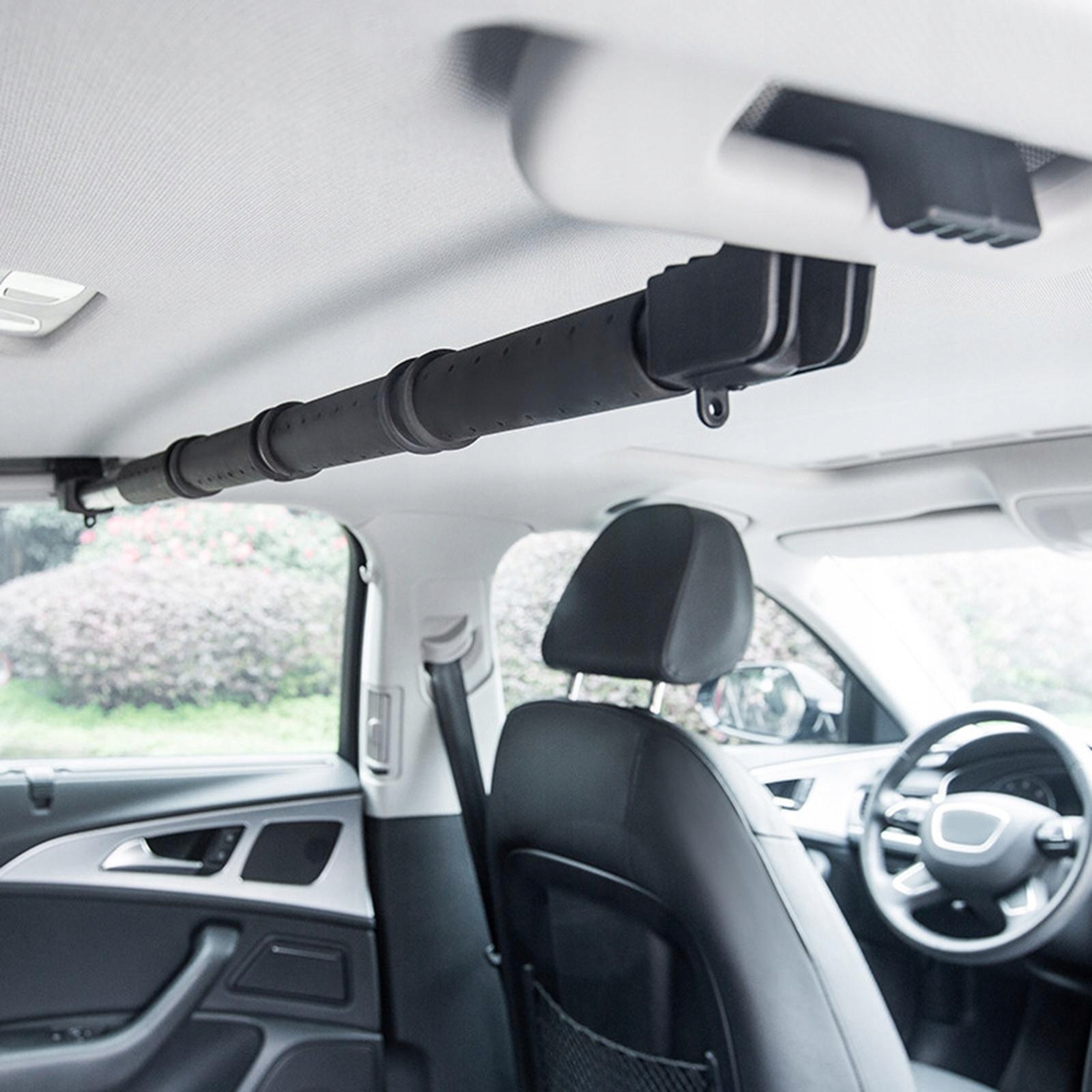 [Телескопический]: штанга для подвешивания одежды в машине. Длину можно регулировать телескопически в диапазоне 85–140 см, чтобы удовлетворить потребности большинства моделей автомобилей.