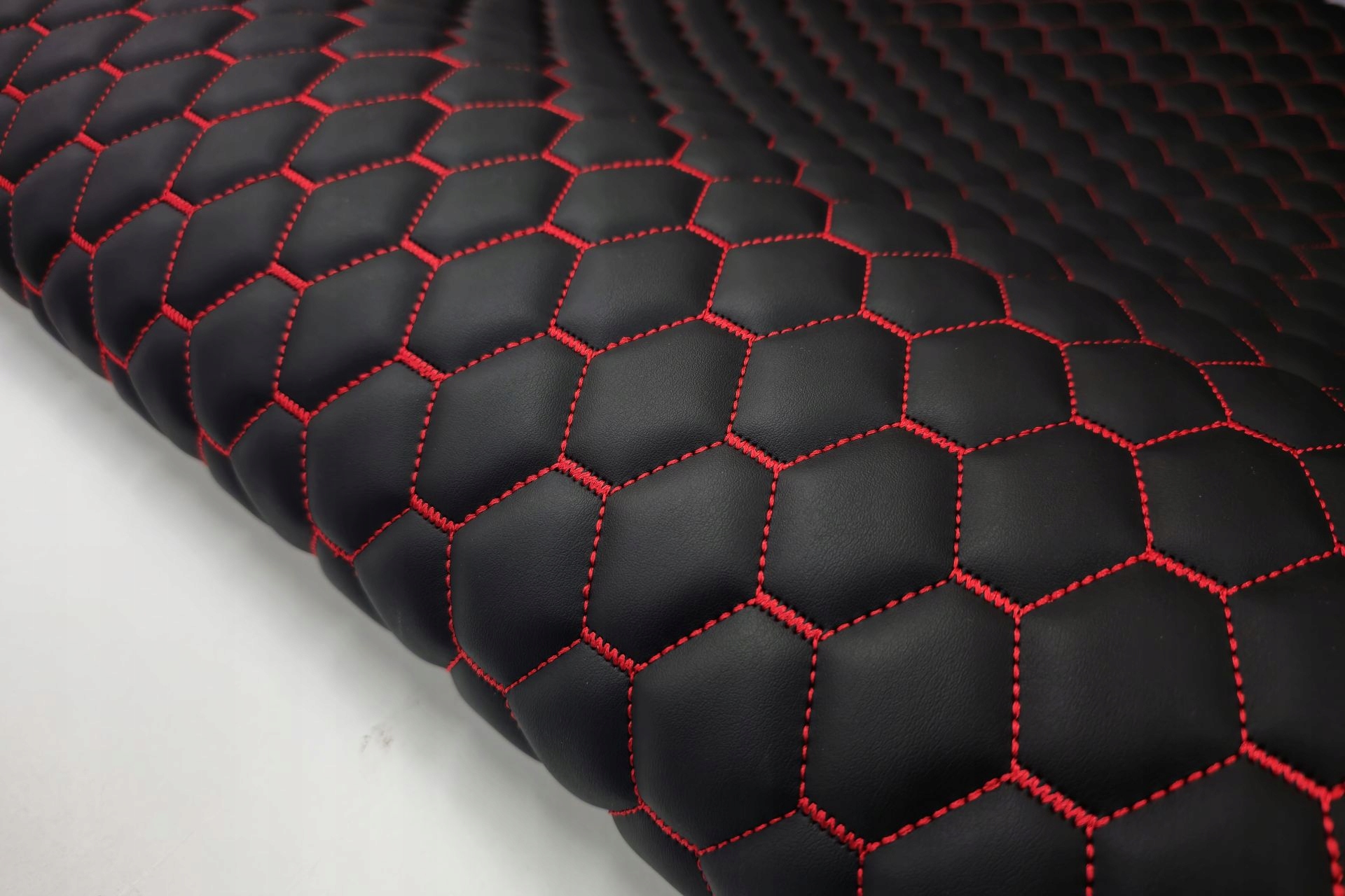 АВТОМОБІЛЬНА ТКАНИНА СКАЙ СТЬОБАНИЙ BLACK DAKOTA DOUBLE КАРО / ЧЕРВОНА НИТКА