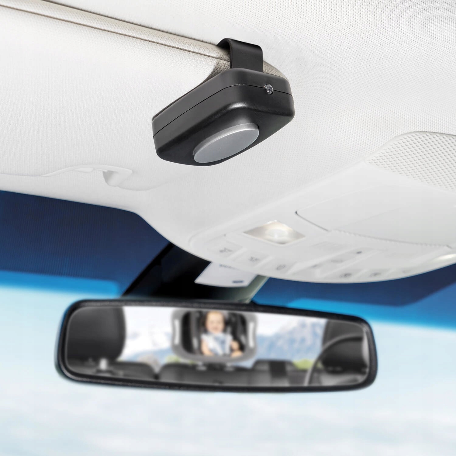 - Как крепится: прикрепите зеркало к подголовнику заднего сиденья, по диагонали от сиденья водителя.