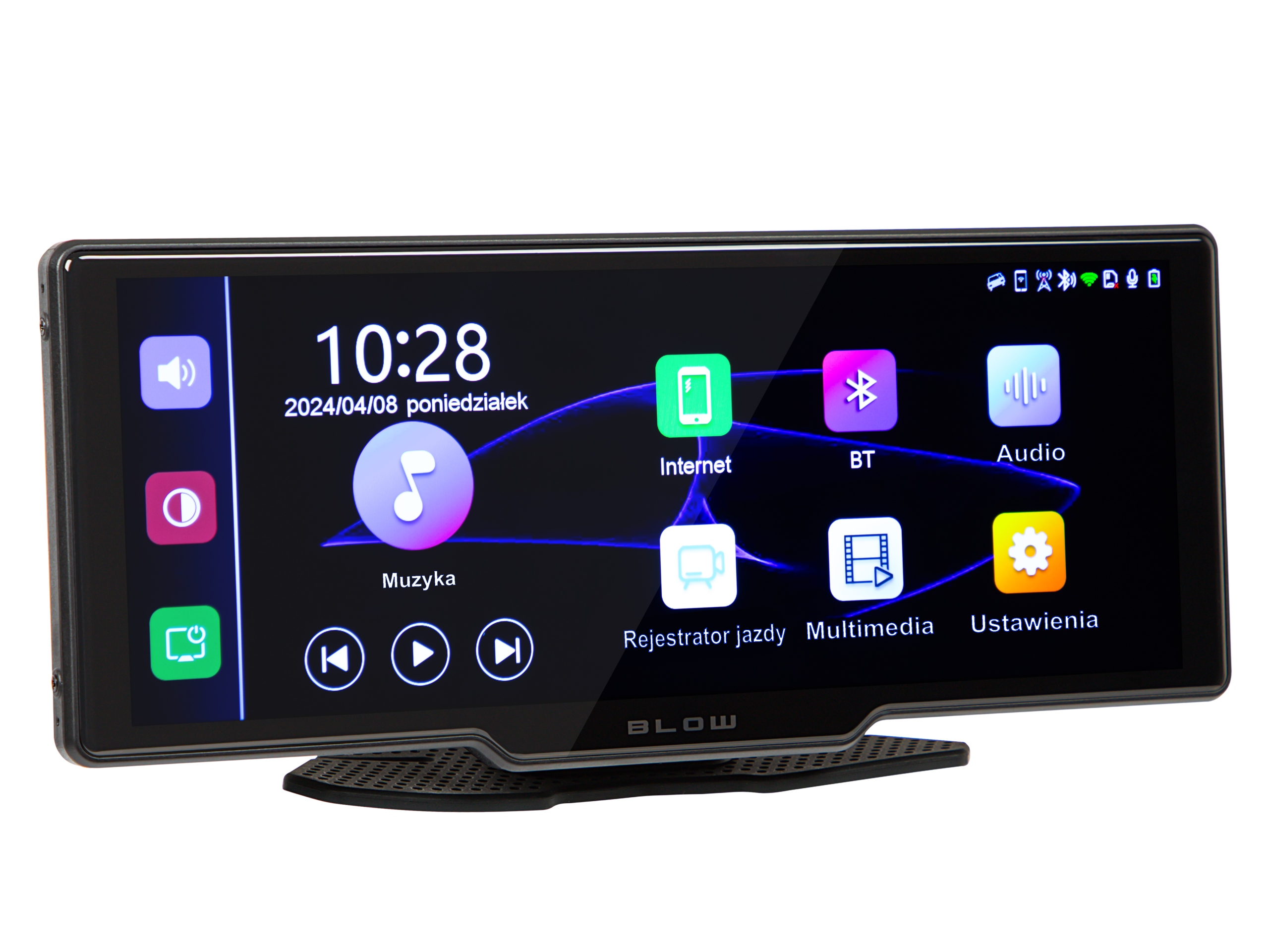 Установить мультимедийную станцию легко — достаточно подключить ее к гнезду прикуривателя автомобиля и прикрепить к кабине с помощью прилагаемую ленту или прикрутите его. Устройство совместимо с широким диапазоном мощности, что делает его пригодным для легковых автомобилей, кемперов и грузовиков.