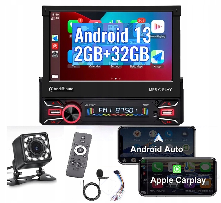 АВТОМОБИЛЬНЫЙ РАДИО BLUETOOTH 1 DIN 7" СЕНСОРНЫЙ ANDROID 13 WIFI APPLE CARPLAY