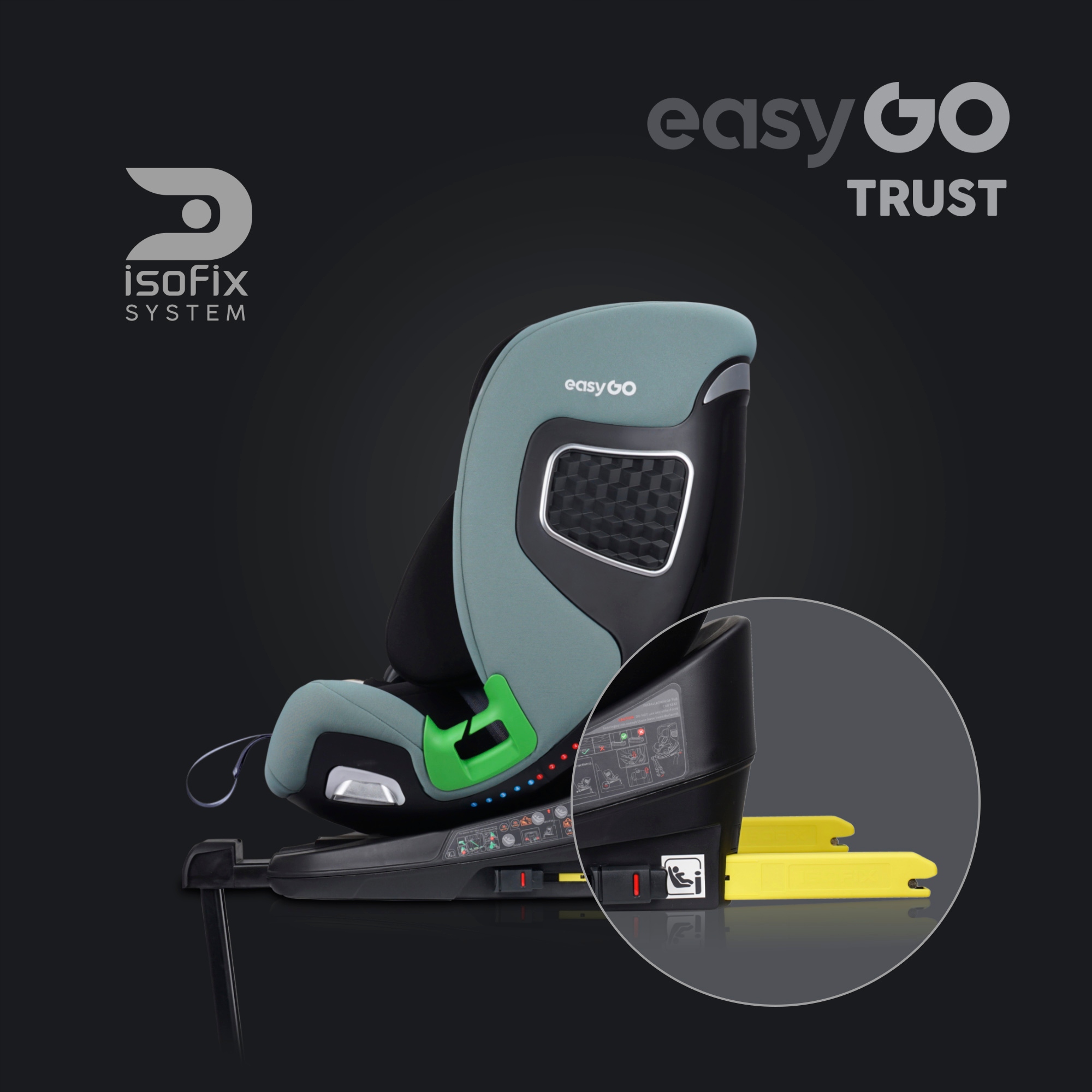 Модель EasyGO TRUST оснащена самой безопасной системой крепления автокресла в салоне. автомобильный - ISOFIX.