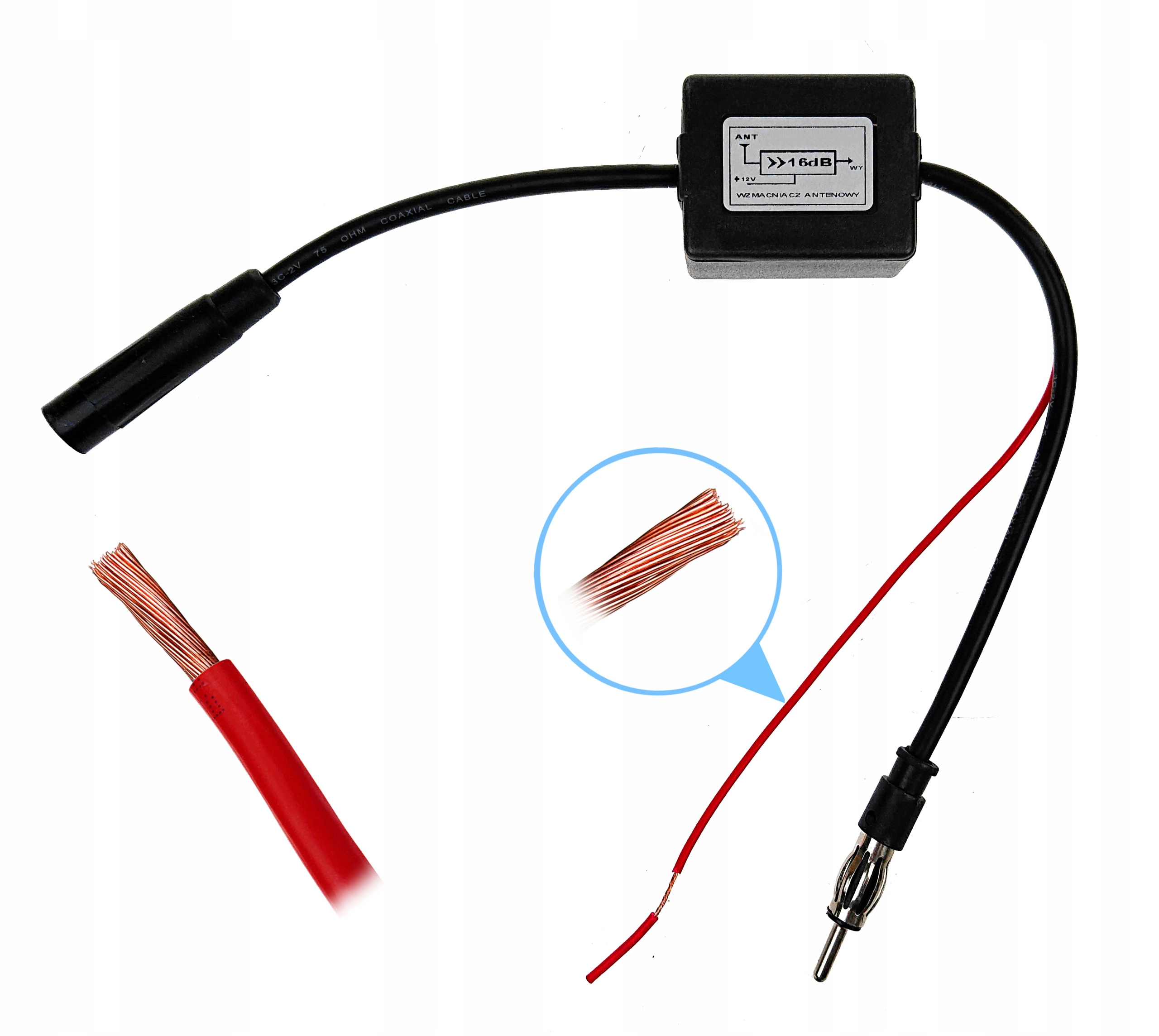✅ Чрезвычайно простое подключение — благодаря встроенным вилкам, всего лишь подключите усилитель между антенной и магнитолой, красный провод подключите к 12В.