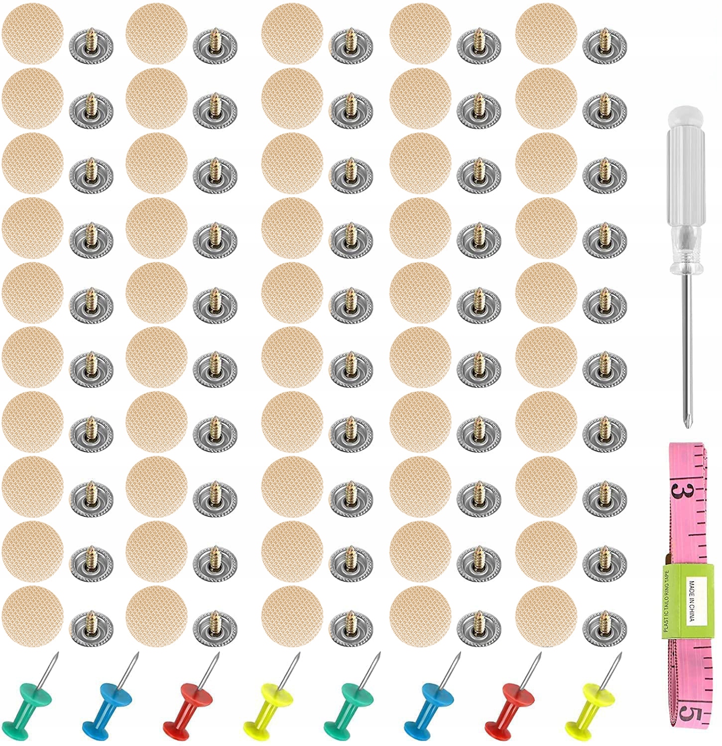 - 100x Бежевая пуговица на потолке: Пуговица изготовлена из прочного материала и имеет диаметр 1,9 см. Идеально подходит для стабилизации обшивки потолка и предотвращения ее провисания.