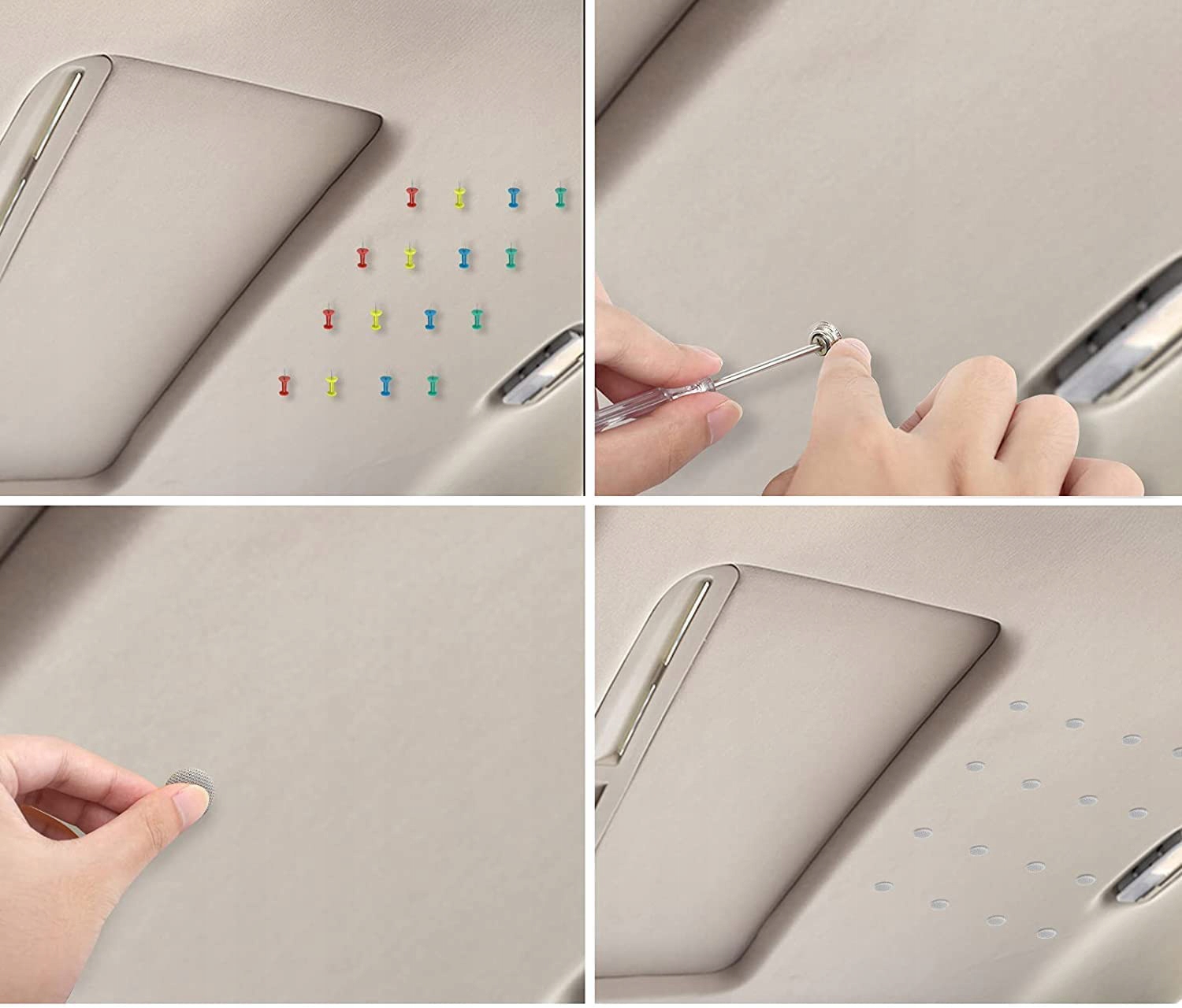 - Винт 100x: Винт длиной 1,5 см, обеспечивающий прочное и долговечное крепление кнопки к обивке потолка.