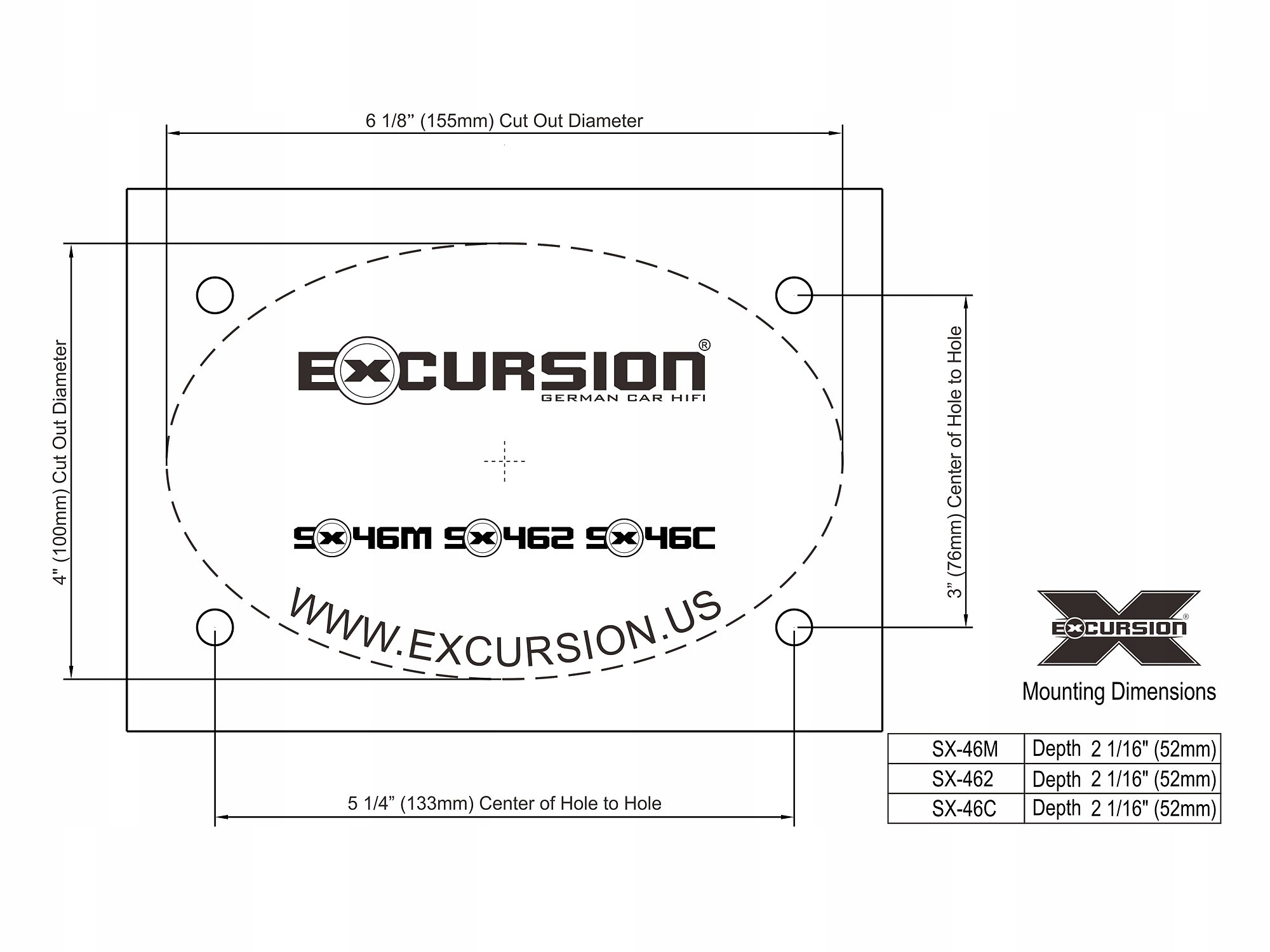 2-полосная автомобильная акустика с размерами НЧ-динамиков 4x6 дюймов из серии Excursion SX (Street eXcursion). В комплект входят 2 высокочастотных динамика, 2 среднечастотных динамика и 4 кроссовера Plug&Play отдельно для каждого динамика. Кроссоверы оснащены высококачественными конденсаторами MKP и обеспечивают широкий выбор конфигураций подключения (например, Bi-Wiring, Bi-Amping). НЧ динамики оснащены алюминиевыми фазокорректорами, задачей которых является улучшение звучания средних тонов при слишком большом угле прослушивания (например, при низком расположении дверных НЧ динамиков) и дополнительный отвод тепла от звуковой катушки.