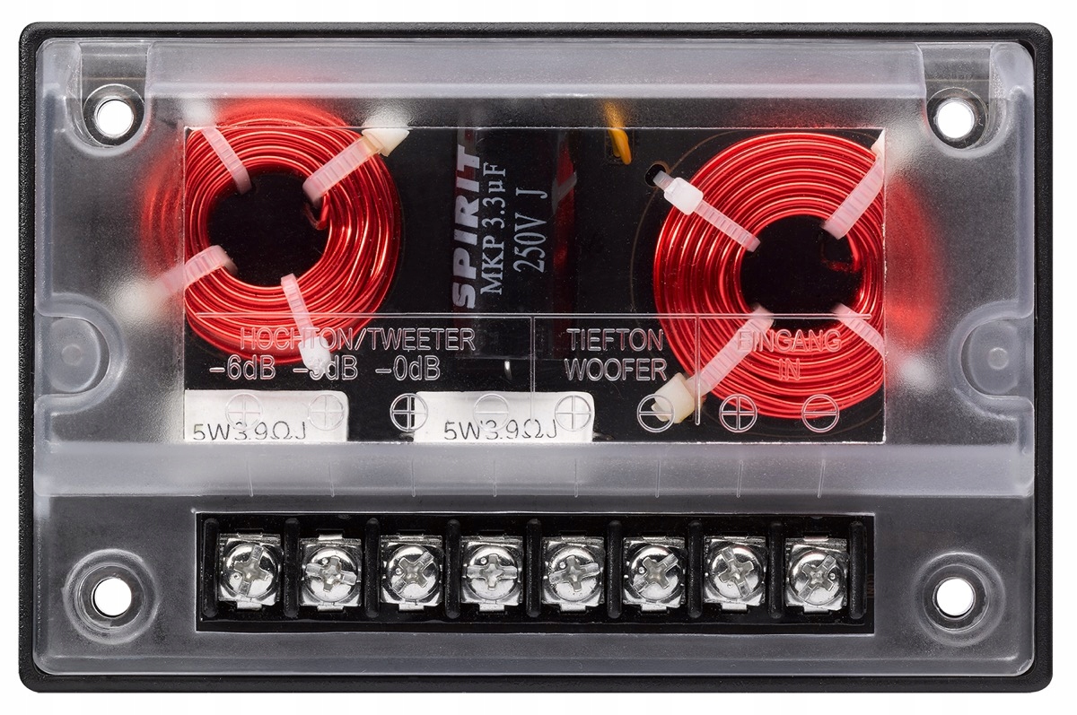 - Кроссовер с воздушными катушками и полипропиленовыми конденсаторами.