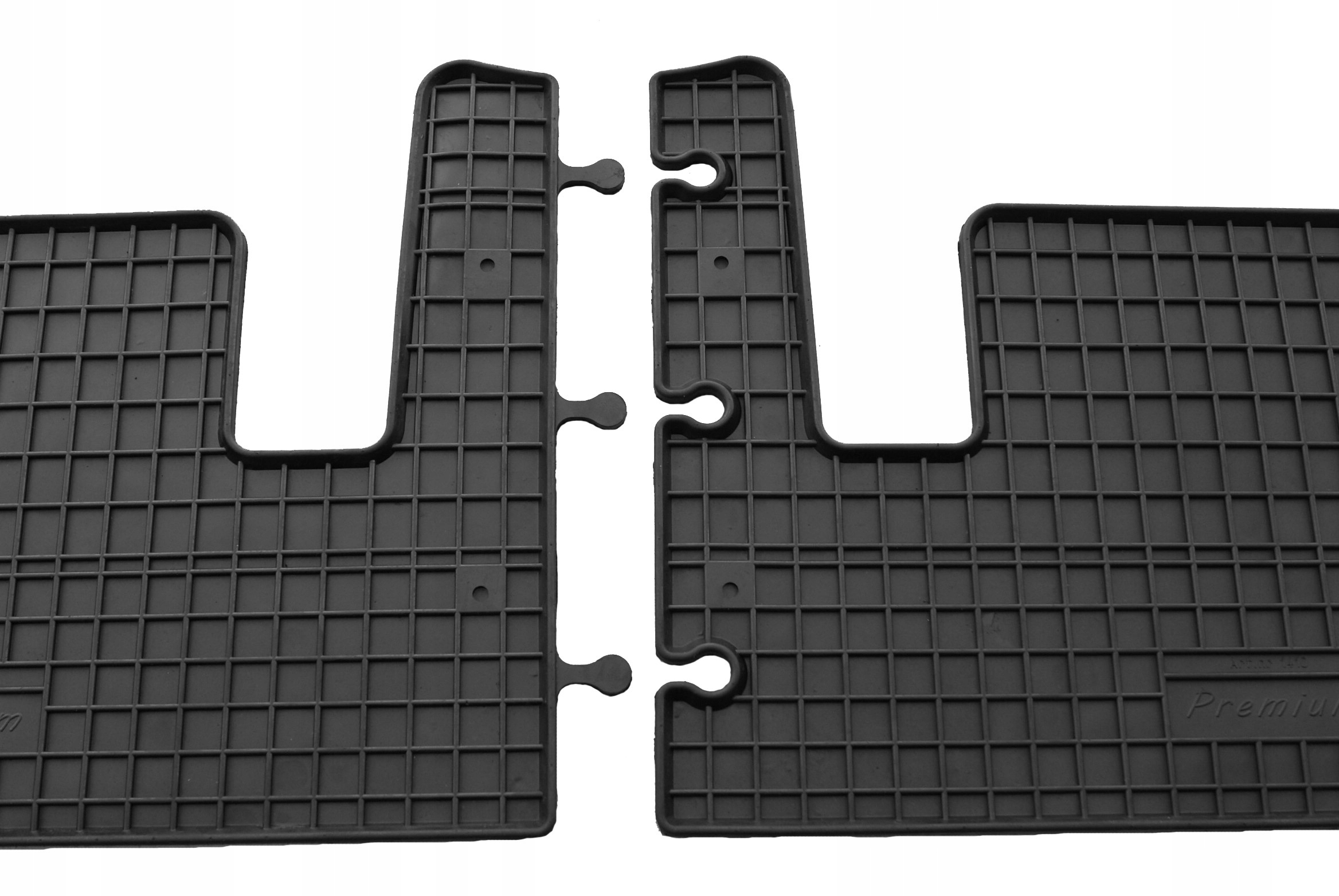 На фото представлена система соединения ковриков методом ПАЗЗЕЛЬ. Связанные таким образом коврики прекрасно покрывают пол автомобиля. Коврики можно легко снять во время чистки, поскольку они разделены