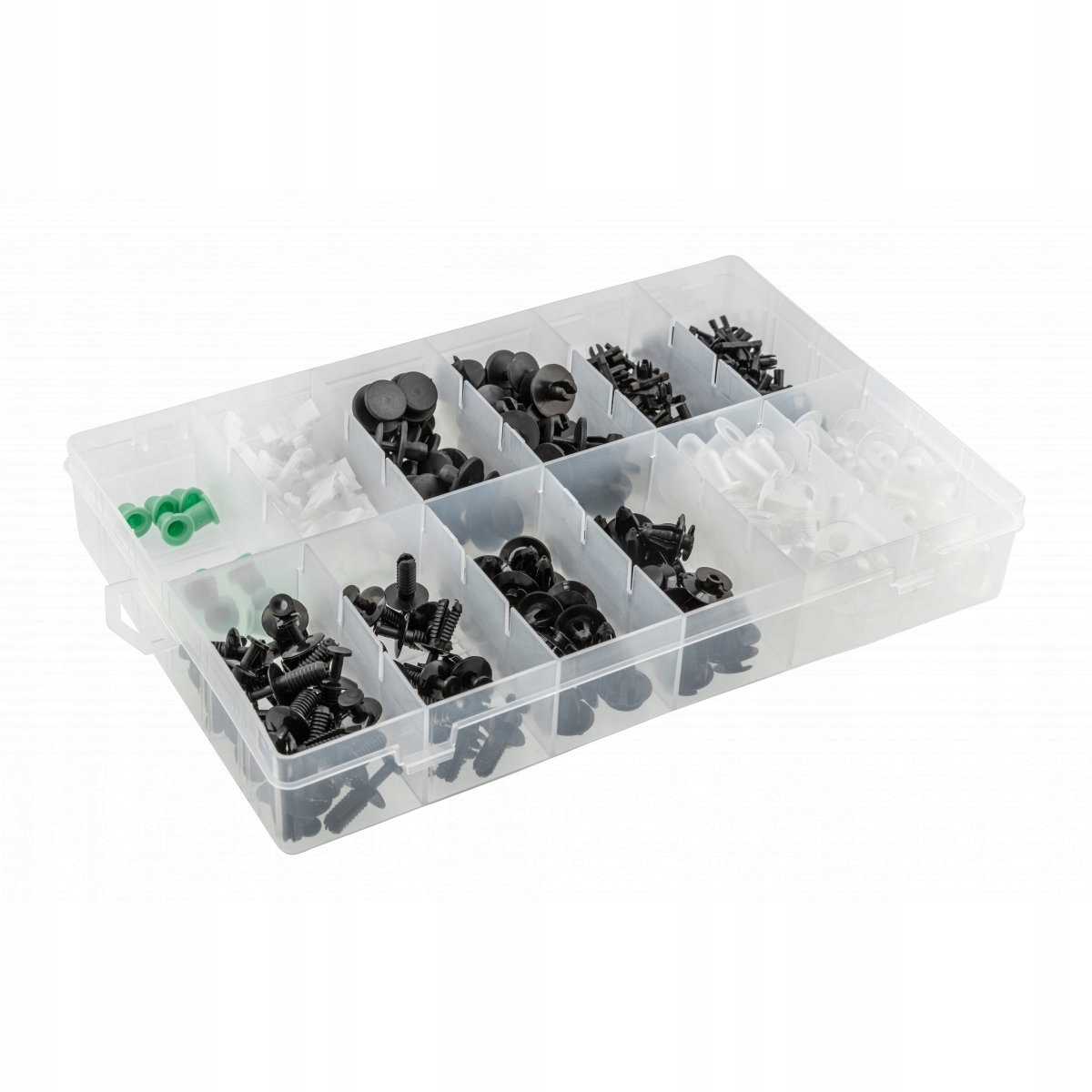 Автомобильные зажимы, используемые для отделочных работ в автомобилях BMW. Особенно полезен при работе с кузовом, бамперами, крыльями, дверными элементами и различными типами чехлов. Предназначен для профессионального и любительского использования. Различные типы зажимов, такие как крепежные зажимы, защелки, втулки, фиксирующие зажимы, планочные зажимы и многие другие. 6 типов пинов, 290 элементов в упаковке.