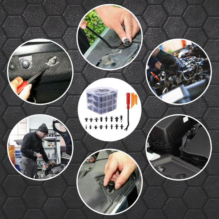 Набор из 625 ЭЛЕМЕНТОВ, в который входят 18 самых популярных размеров зажимов и крепежных соединителей. > Набор дополнен инструментом для снятия зажимов.