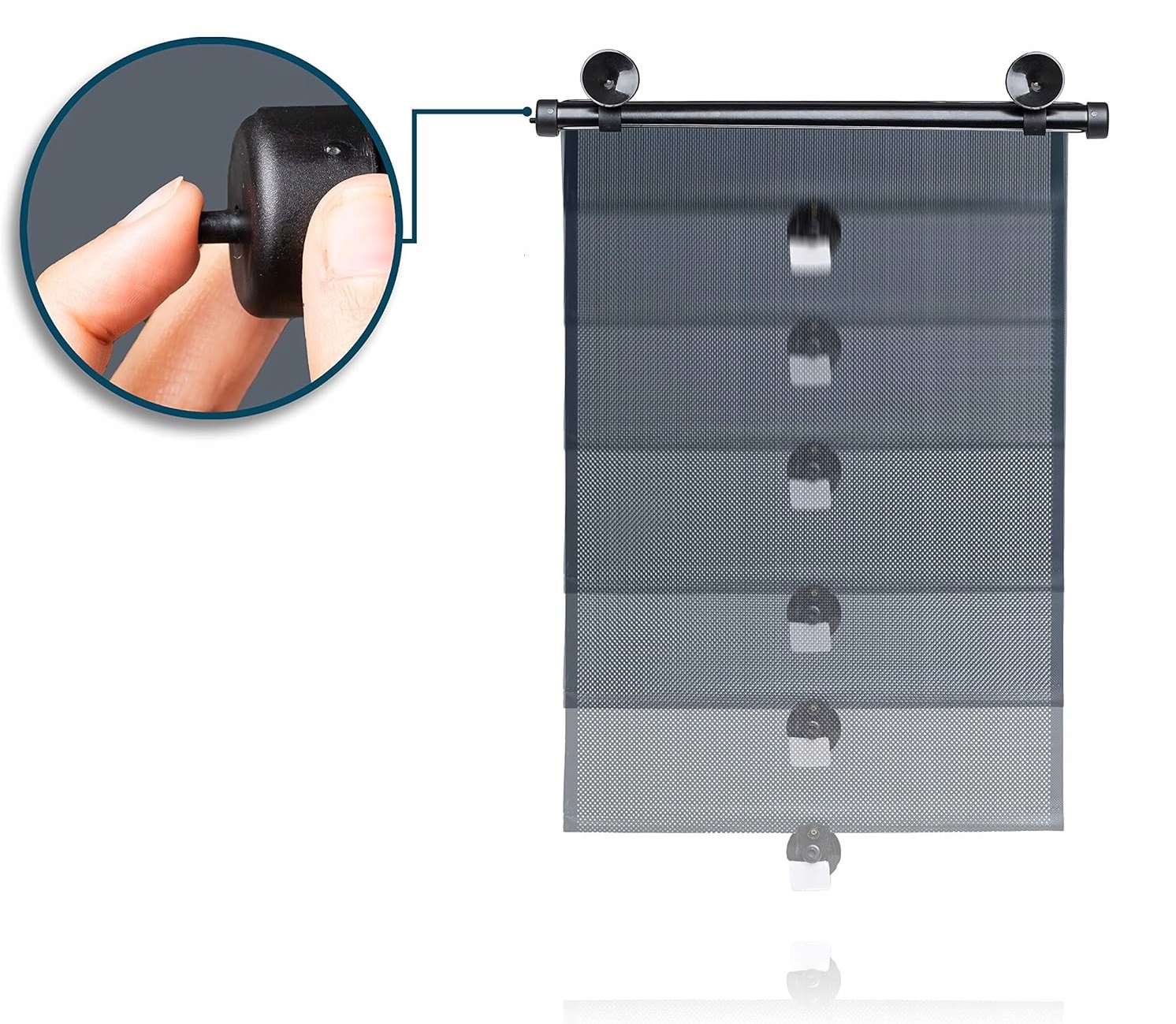 Ролетка крепится с помощью прилагаемых присосок, две из них размещаются в верхней части стекла и одна в нижней, затем к ним крепится рулонная штора.