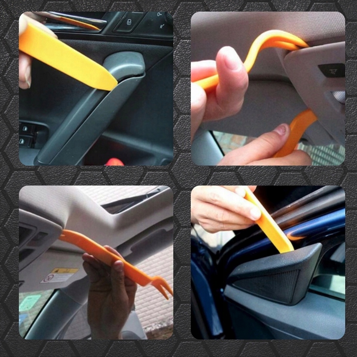 Набор съемников различной длины и формы для безопасного демонтажа обивки, автомобильных молдингов, дверных обивок и т. д. Особенно рекомендуется для работ в автосервисах, кузовных работах, покраске и автодетализации.