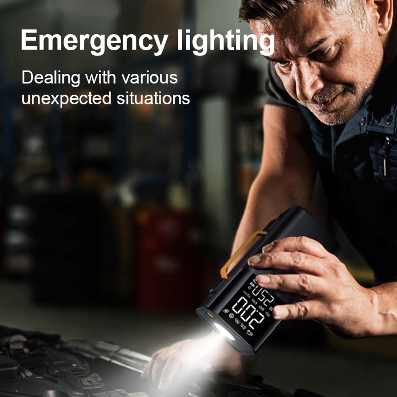 5. Встроенный воздушный компрессор. Встроенный воздушный компрессор позволяет накачивать автомобильные шины, обеспечивая быстрое восстановление давления в ремне или в недостаточно накачанных шинах. Эта функция необходима для длительных путешествий, приключений на свежем воздухе и повседневного использования.