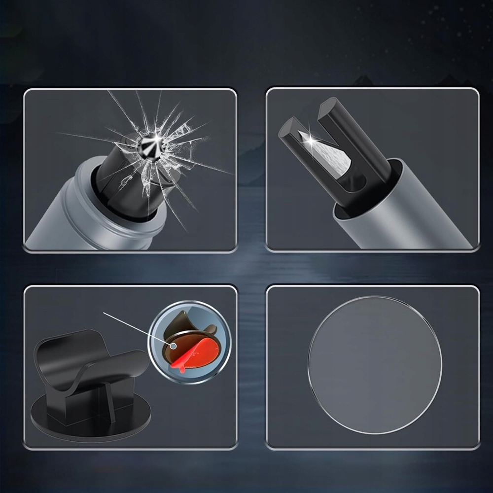 【Портативный и всегда под рукой】 📍Размеры всего 10,5 х 2 см, легкий и удобный. Благодаря прочной накладке с клеем 3М ее можно надежно прикрепить к двери, приборной панели или другому удобному месту. Держите спасательный инструмент под рукой, когда он вам понадобится. (Мы надеемся, что вы никогда им не воспользуетесь, но всегда держите его при себе.) 🚗