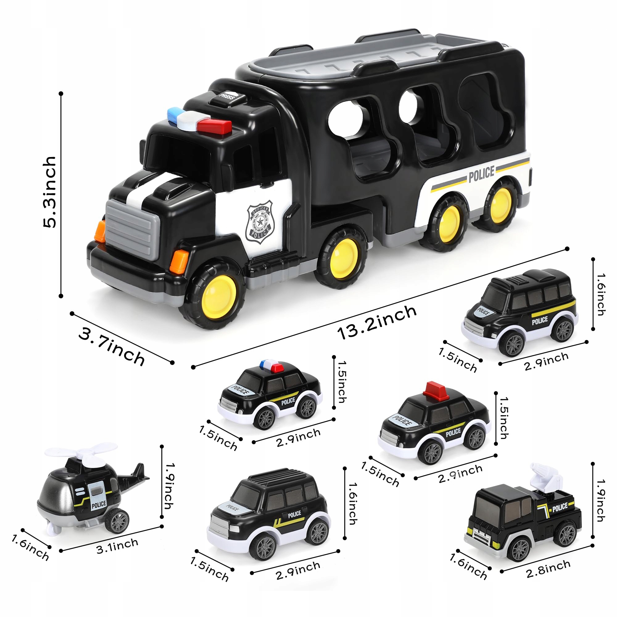 Полицейский автомобиль с буксирным грузовиком установил 7 шт. Рождественский подарок