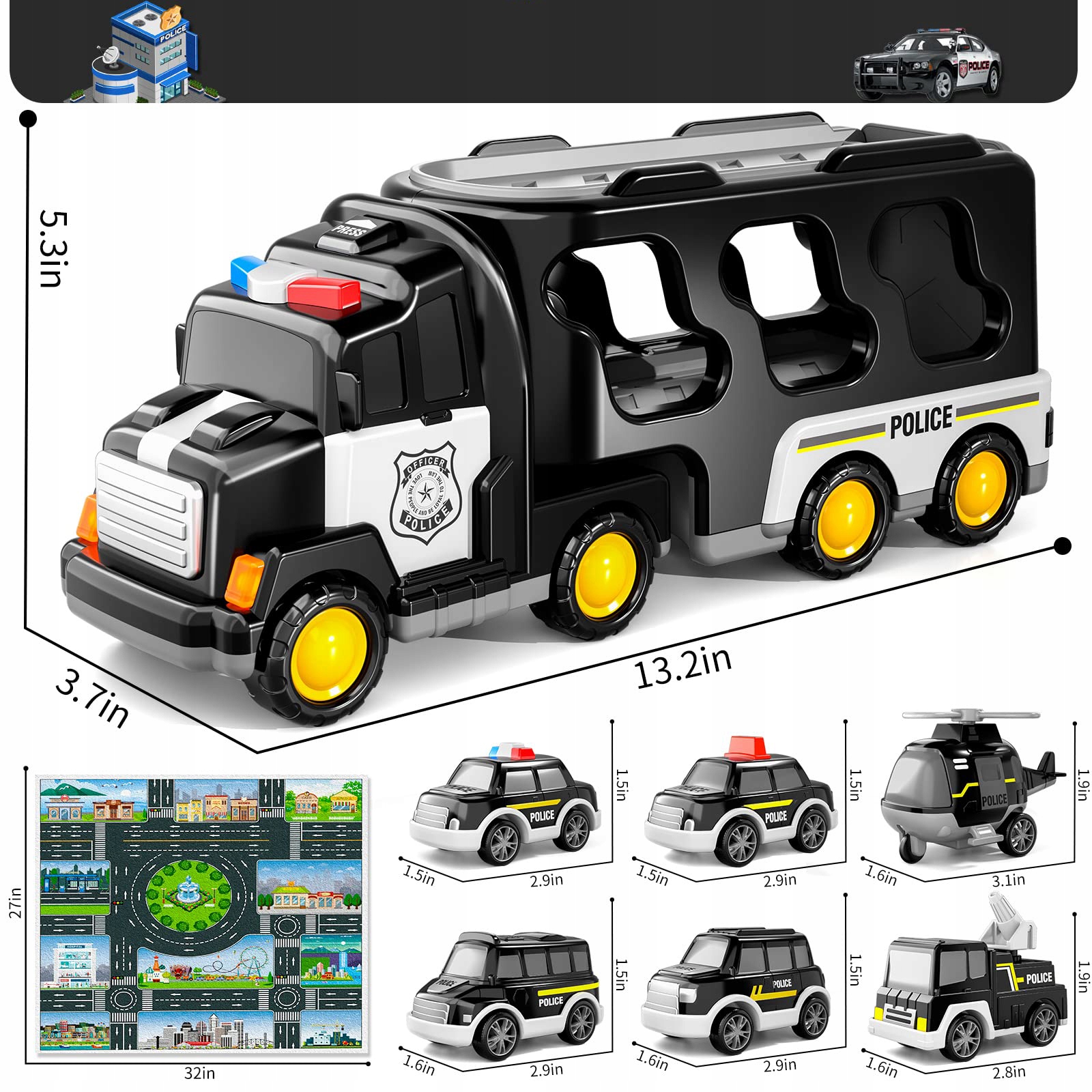 Просматривая «Полицейский автомобиль с буксирным грузовиком установил 7 шт. Рождественский подарок», вы можете быть уверены, что данный товар из каталога «[rubrica_name]» будет доставлен из Польши и проверен на целостность. В цене товара, указанной на сайте, учтена доставка из Польши. Внимание!!! Товары для Евросоюза, согласно законодательству стран Евросоюза, могут отличаться упаковкой или наполнением.