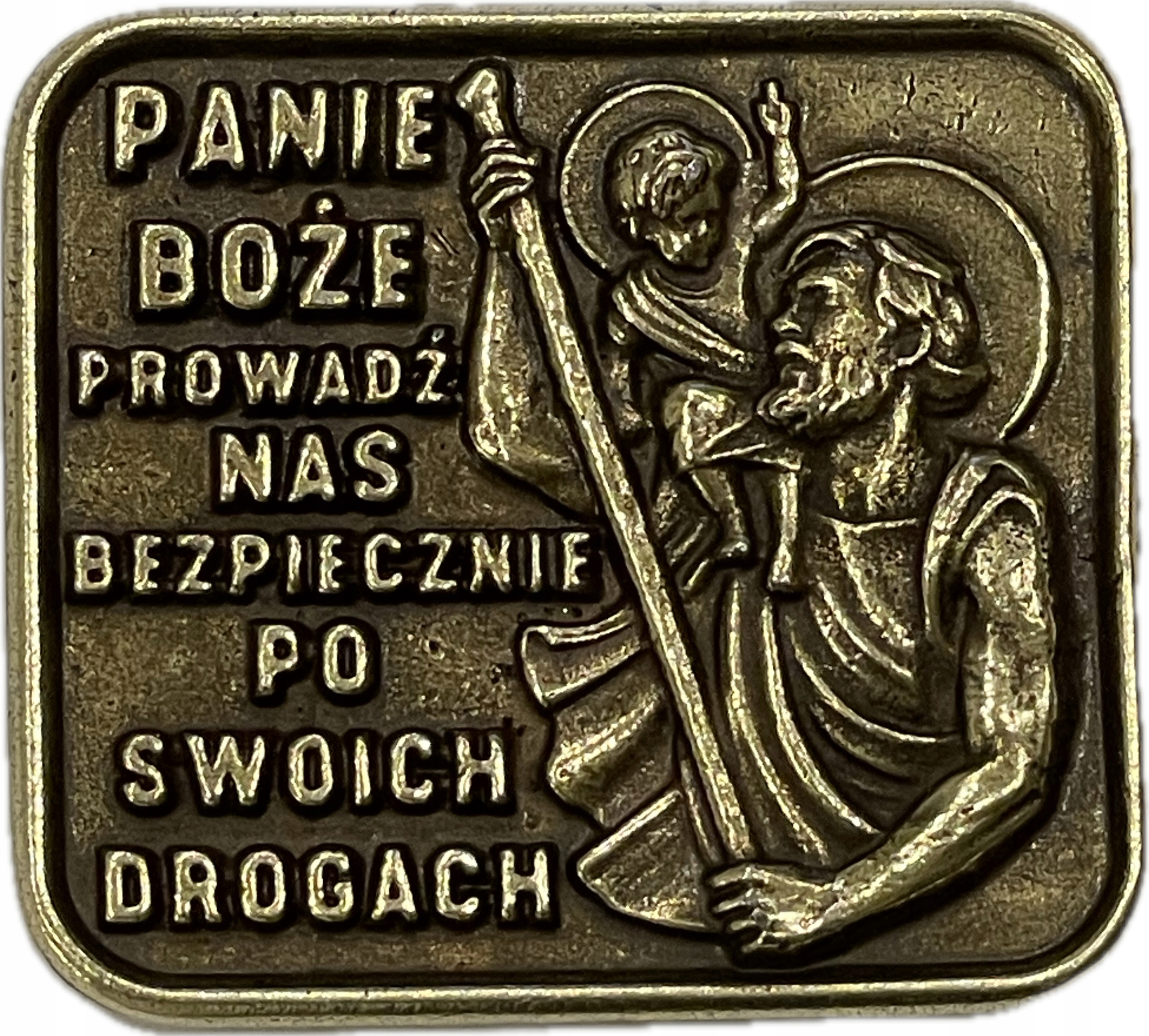 - металлический значок(эмблема) на автомобиль с изображением Св. Кшиштофа и водительской молитвы