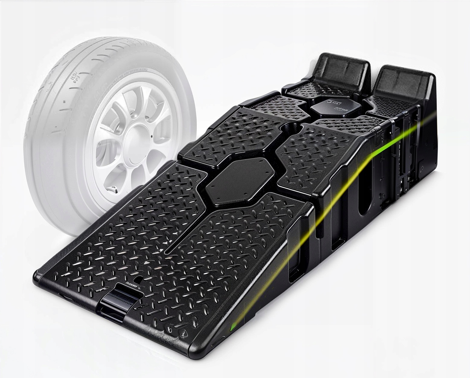 Особая поверхность аппарелей обеспечивает хорошее сцепление автомобильных шин, что повышает безопасность при маневрировании.