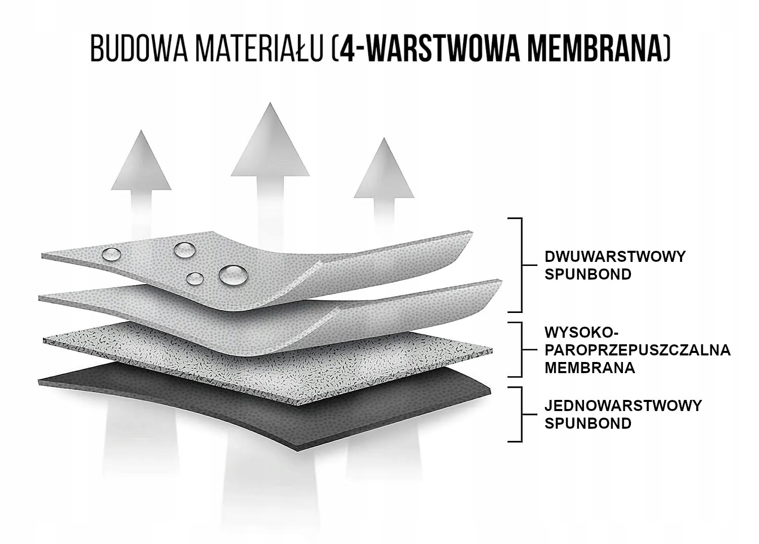 - Покрытие полностью изготовлено из последнего поколения высокопаропроницаемая мембрана графитового цвета.