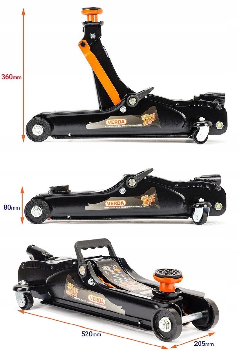 Высококачественный низкопрофильный гидравлический домкрат 2, ЛЯГУШКА типа 5Т. Изготовлен из толстого стального листа, обеспечивающего достаточную жесткость конструкции. Удобен в использовании, оснащен 4 колесами, которые позволяют быстро разместить домкрат в нужном месте. Работа в диапазоне от 80 до 360 мм. Низкопрофильный домкрат можно использовать при работе с заниженными автомобилями.