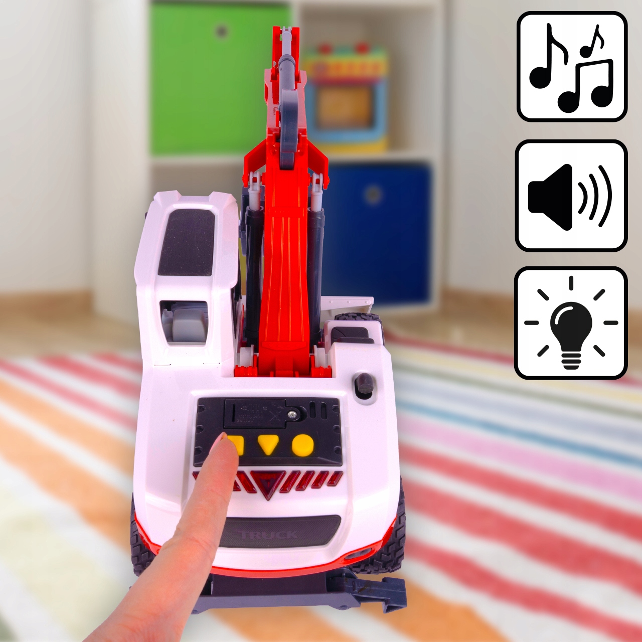 Функции звука и света очень реалистичны, три кнопки в задней части экскаватора начинают дополнительные эффекты. Звук движения, обращения или рога поможет перейти в мир строительства, и наилучшим преимуществом является стимулирование воображения вашего ребенка.