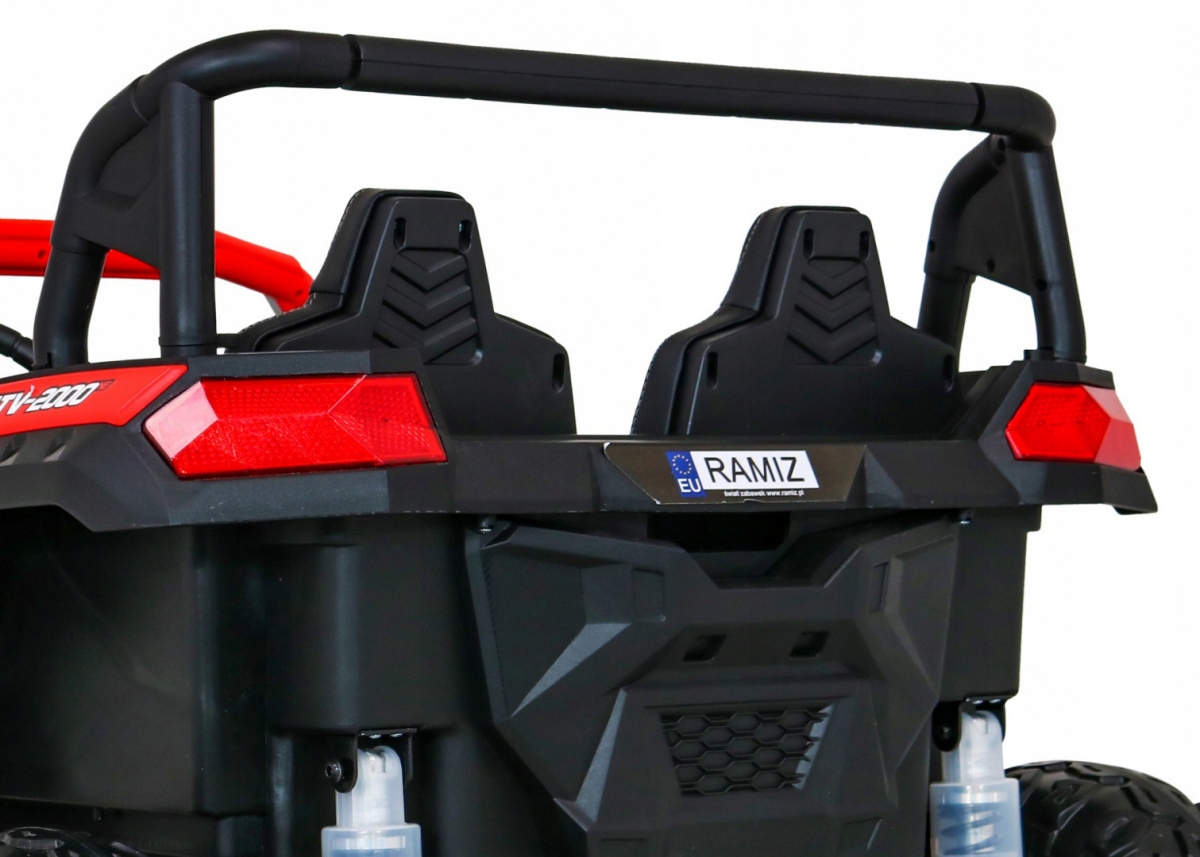 Электромобиль для детей Багги приводится в движение четырьмя мощными двигателями 24В каждый мощностью 200Вт с питанием от аккумулятора 24В 14Ач.