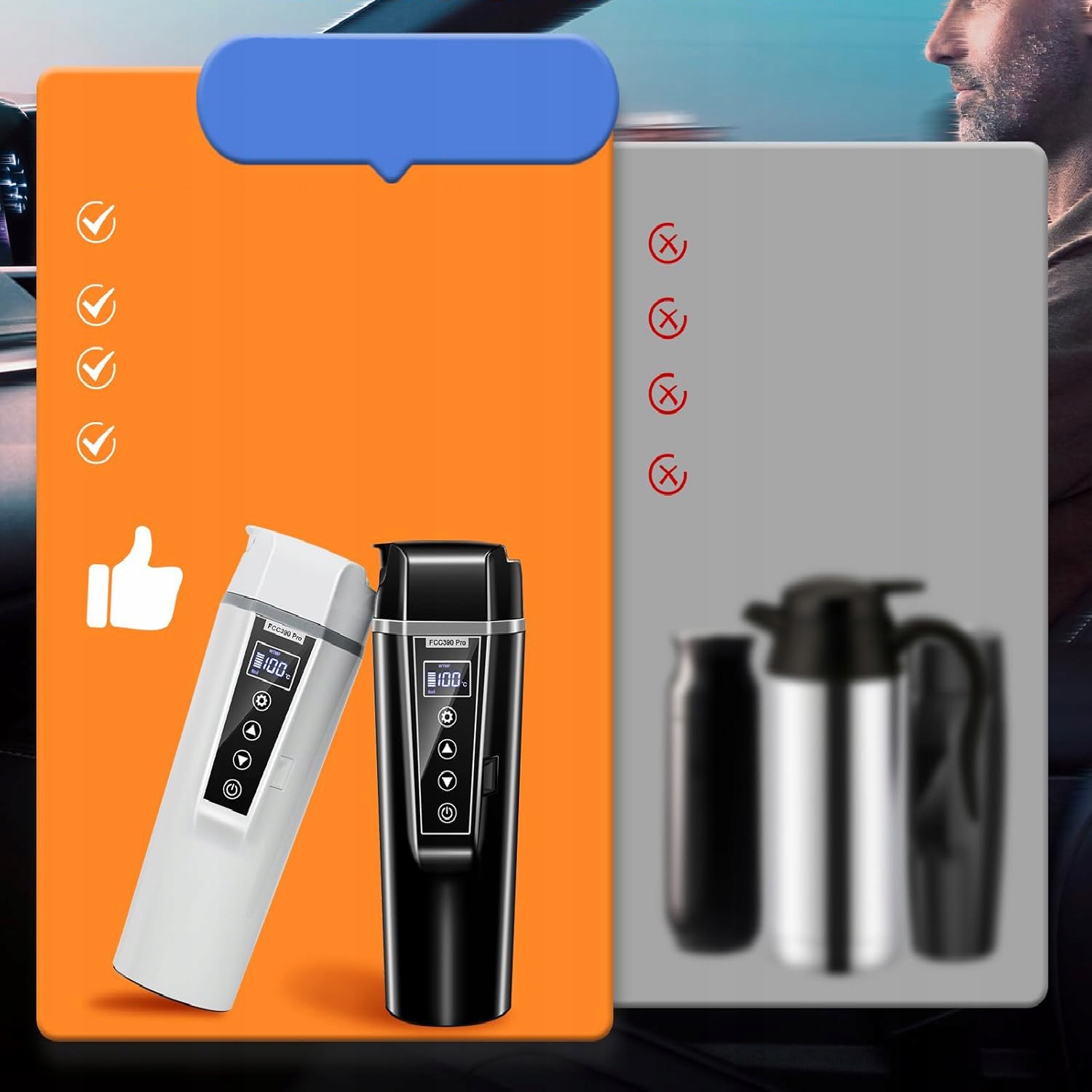 Этот портативный автомобильный чайник оснащен широкоугольной открывающейся крышкой и носиком небольшого диаметра, эргономичным дизайном, предотвращающим удушье и проливание. Боковое крепление позволяет легко разместить его в подстаканниках автомобиля. Благодаря адаптеру автомобильного прикуривателя его можно использовать даже как небольшой электрочайник. Интегрированная конструкция позволяет легко носить с собой.