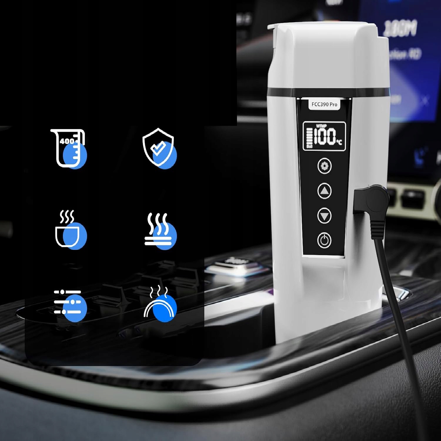Этот автомобильный чайник на 12 В/24 В оснащен большим светодиодным дисплеем. Умные сенсорные кнопки позволяют установить предпочитаемую температуру, и она четко отображается на экране. Портативный и простой в использовании, этот автомобильный чайник хорошо работает в различных ситуациях, в том числе в машине, такси, грузовике и во время путешествий с детьми, обеспечивая больший комфорт в путешествии.