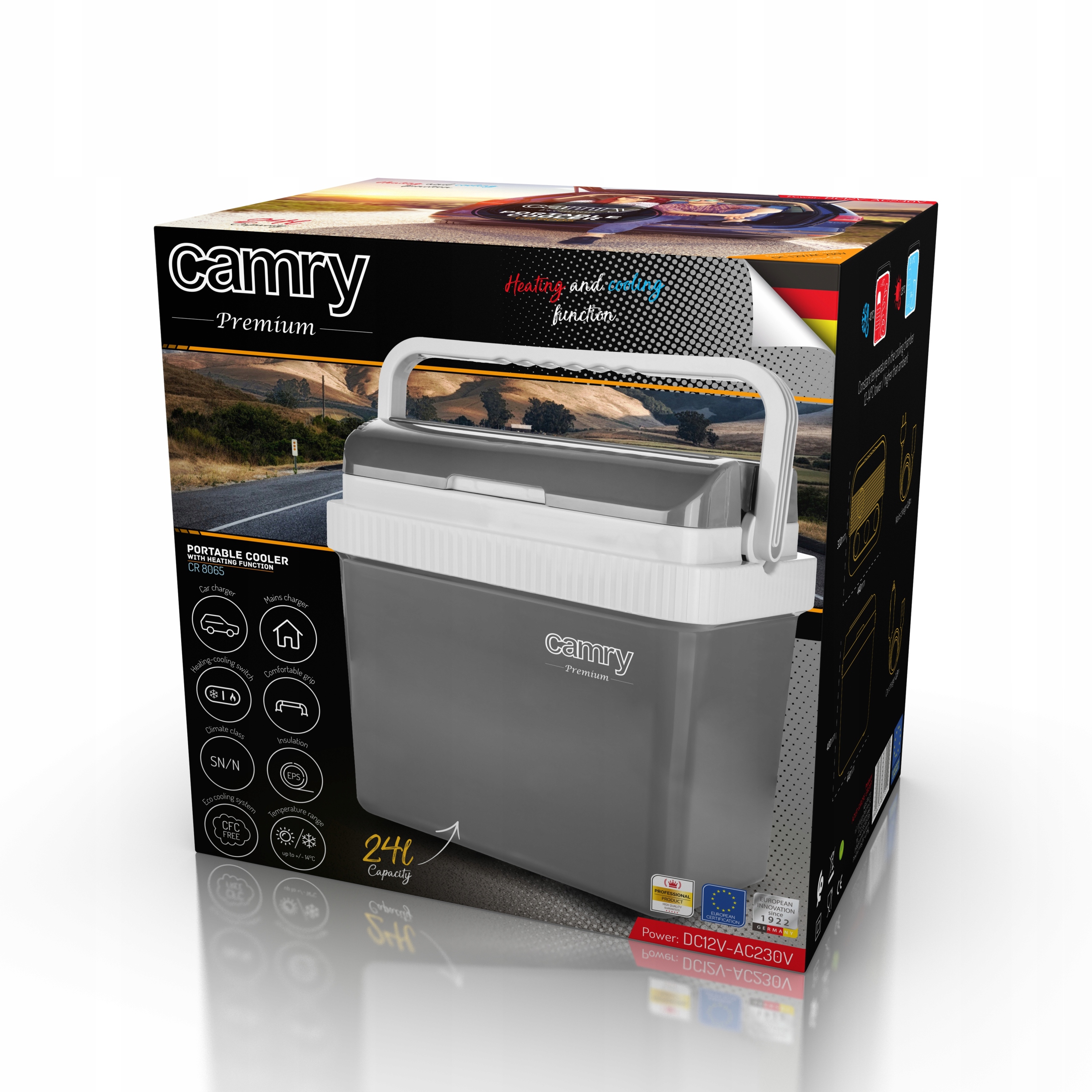 Создан для путешественников, которые ценят охлаждающие напитки даже в походе. Большая охлаждающая камера вмещает до 25 литров. Благодаря специальной теплоизоляции корпуса она может поддерживать температуру в охлаждающей камере. . Пользователь может подключить его как к сети 230 В (получение охлаждающей мощности 65 Вт), так и к розетке автомобильного прикуривателя 12 В (мощность 50 Вт). Для удобства установлена ручка, которую можно спрятать в крышку холодильника. В закрытом состоянии холодильник превращается в удобный чемодан, эстетичный и удобный для переноски.
