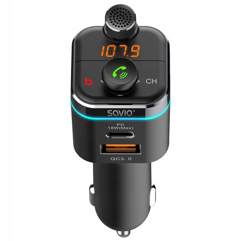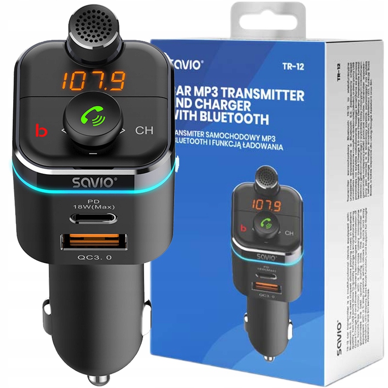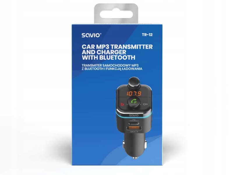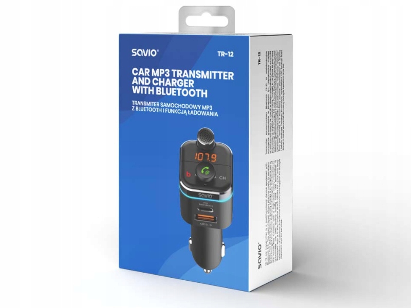Передатчик Bluetooth 5.0, зарядное устройство USB QC SAVIO TR12 FM-АУДИО MP3-ПРИЕМНИК