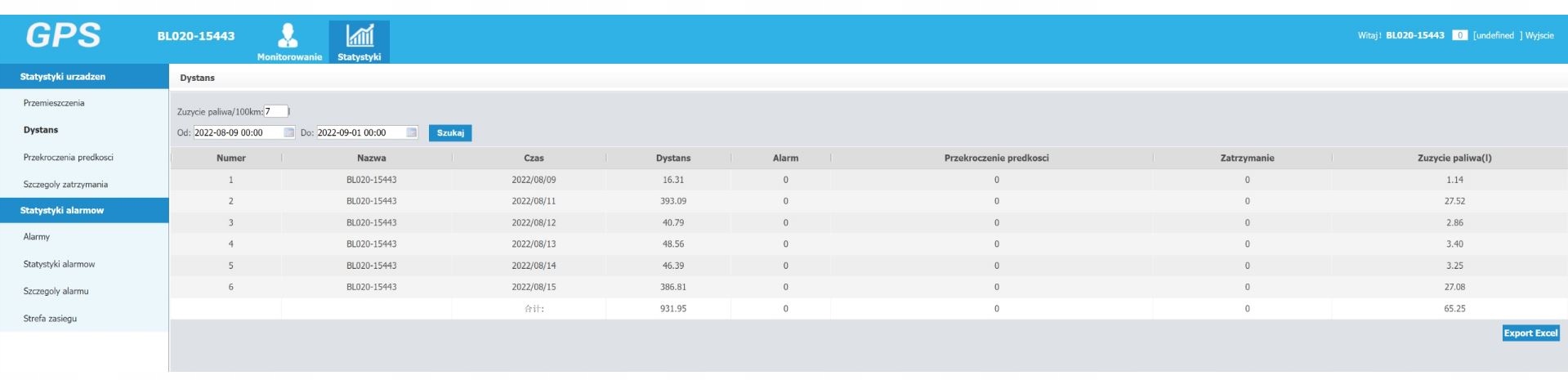 Теперь вы можете примерно рассчитать, сколько топлива вы израсходуете при движении по заданному маршруту. Платформа также позволяет показывать статистику ежедневных перемещений локатора с указанием времени и расстояния. Вы можете экспортировать все данные в файл Excel