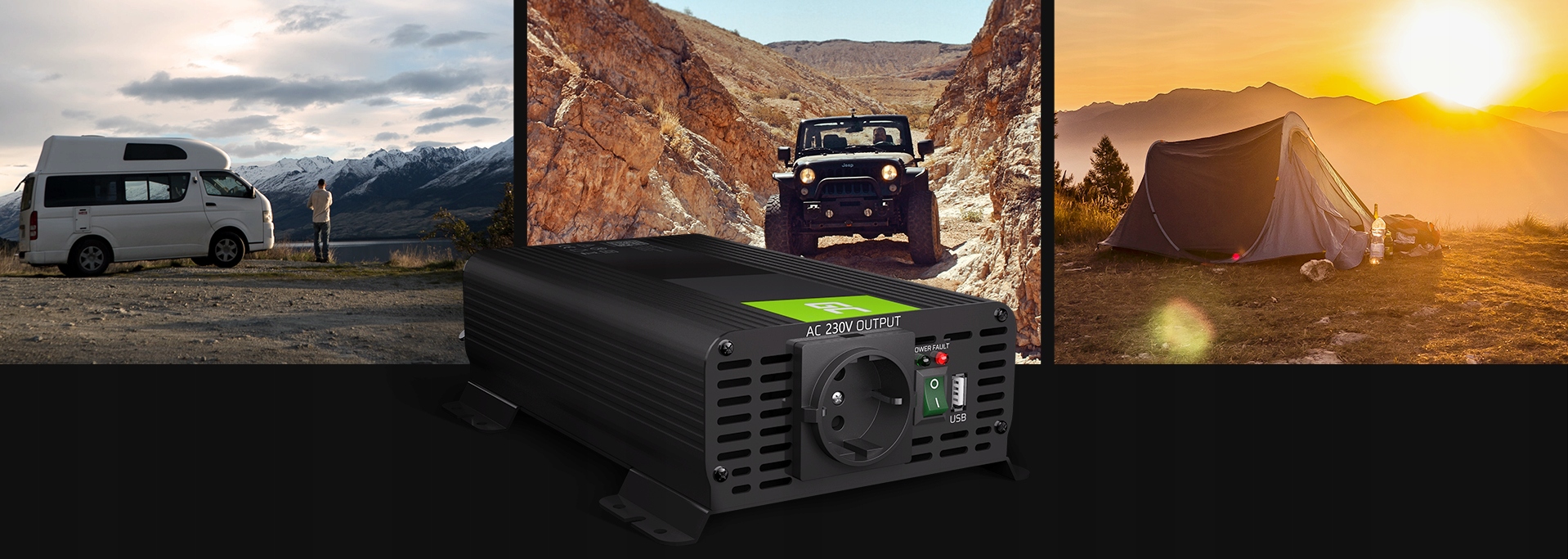 После выбора напряжения решите, какой преобразователь мощности подойдет. Он имеет ключевой аспект, поскольку он сообщает нам, сколько и какие устройства он может снабжать электричеством. Если мы хотим подключить выбранное устройство к инвертору, мы должны проверить потребляемую мощность на паспортной табличке (если мы хотим подключить больше устройств, мощности следует суммировать). Мощность, потребляемая вашим устройством, не должна превышать 85% от номинальной мощности преобразователя! Например, для ноутбука, потребляющего 100 Вт, и обогревателя, потребляющего 300 Вт, подходящим преобразователем будет преобразователь мощностью 500 Вт или более.