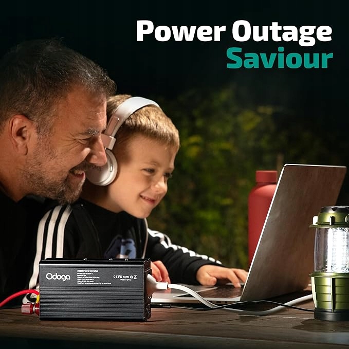 Высокая выходная мощность: заряжайте свой мобильный телефон, ноутбук, камеру и многое другое с помощью инвертора Odoga мощностью 500 Вт.