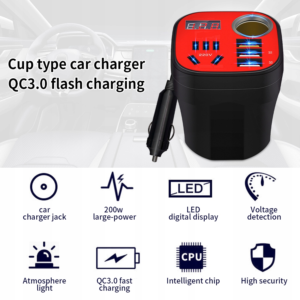 Автомобильный преобразователь-преобразователь зарядного устройства QC 200 Вт 5-в-1 12 В 24 В на 220 В