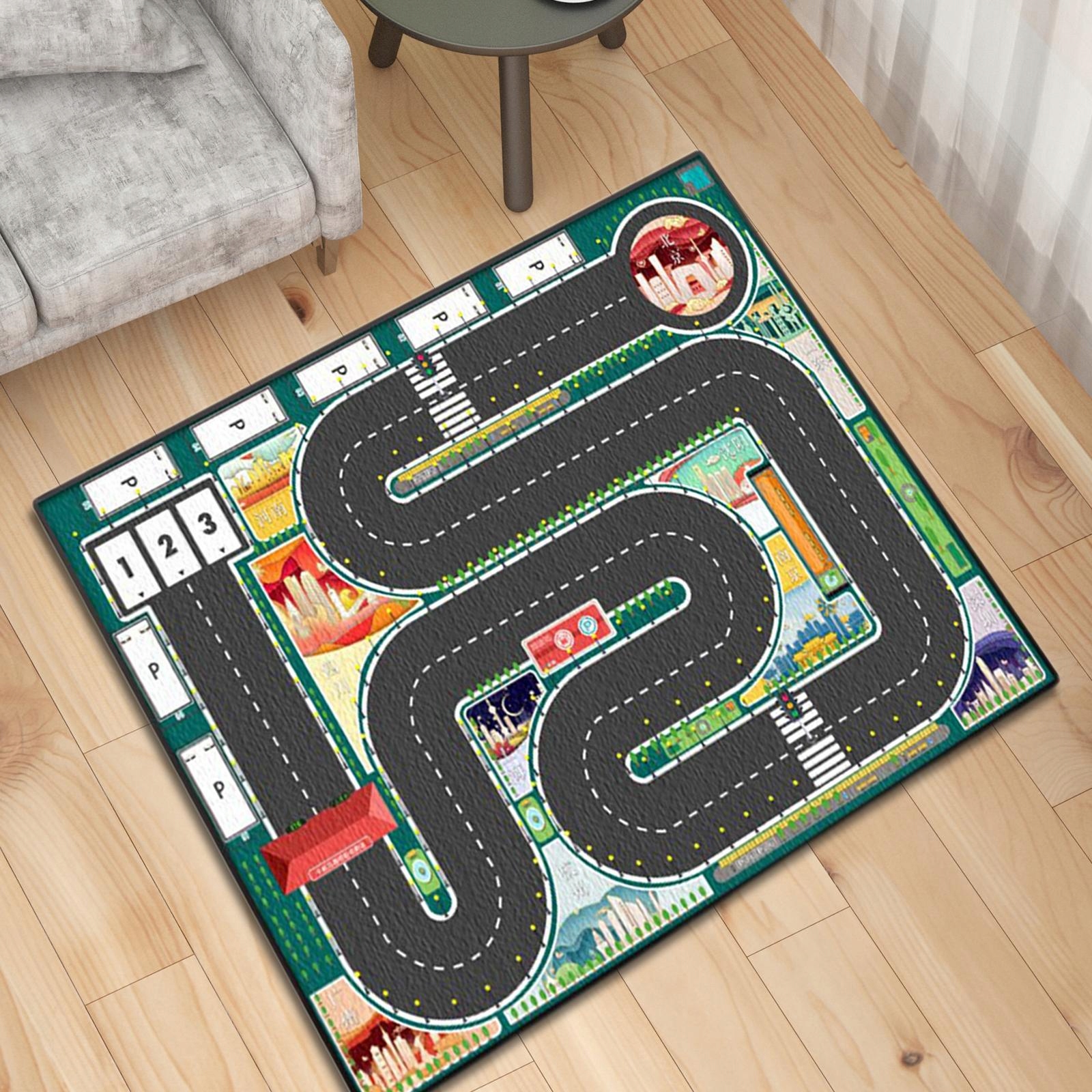 КОВЕР ДЛЯ АВТОМОБИЛЬНЫХ ИГРОВ: детский игровой коврик с ярким рисунком и ярким цветом может привлечь внимание детей.